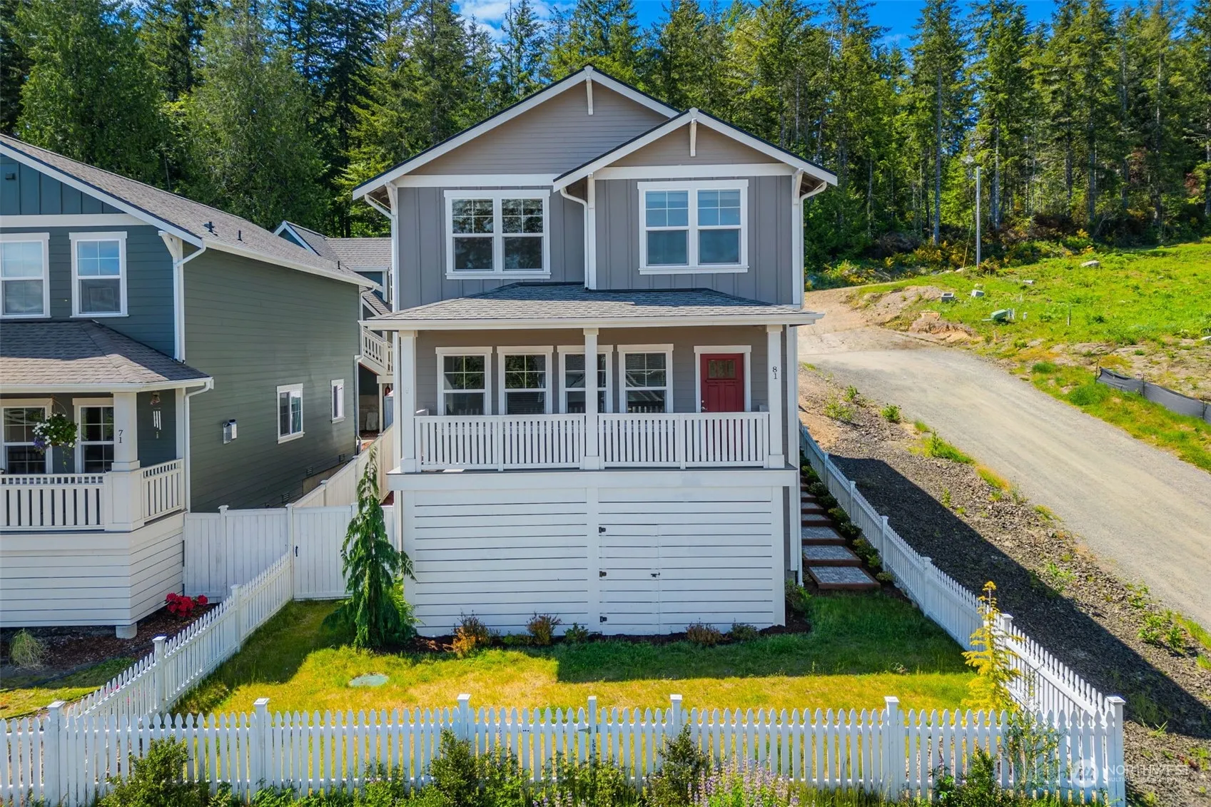 Elegant Craftsman home in Allyn with Mountain and Sound views! Built in 2021 and beautifully maintained, this North Bay Village home is completely move-in ready. Open concept floorplan features wide-planked engineered hardwood floors, living area with gas fireplace, dining space and main level ½ bath. Gourmet kitchen with stainless steel appliances, quartz counters and huge island. Upstairs primary suite with attached 5-pc bath and walk-in closet, plus 2 additional bedrooms & full bath. Large covered deck to relax enjoy the picturesque views. Don’t miss the finished bonus space above detached 2-car garage! Fenced yard, heat pump & tankless water heater. Great location near boat launch to Case Inlet, Golf Course & Hwy 3 for easy commuting!