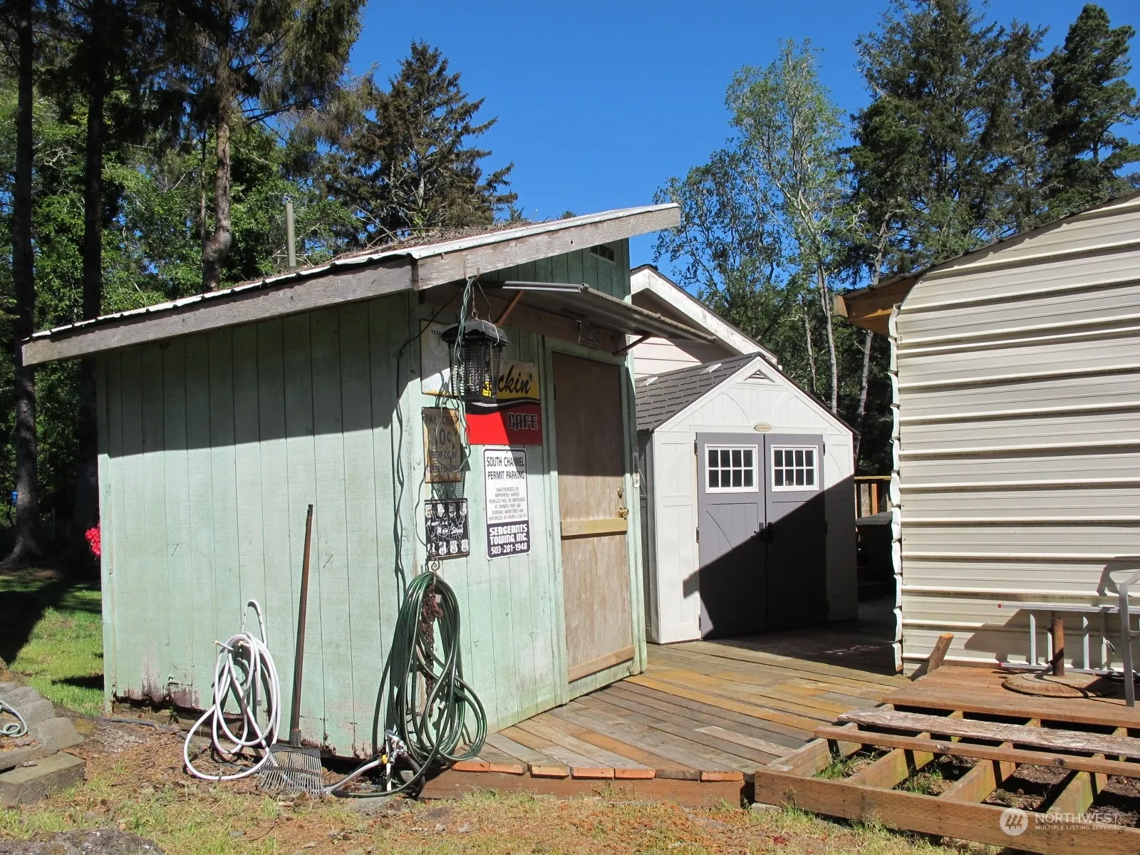 Sweet set up with 2006 Park Model, situated on a corner lot, just minutes to the beach! The lot includes 2 RV hookups for your guests, plus a storage shed with washer/dryer & refrigerator, shop/shed for all your beach toys, and one more shed for yard equipment. Side deck leads to fenced area for your pets. Front deck is covered for rain or shine outdoor enjoyment. New interior paint in living room. Some new flooring. Park model shall convey with a bill of sale. Owner will carry with $100K down, 8% interest, 20 AMT, with 5 yr balloon