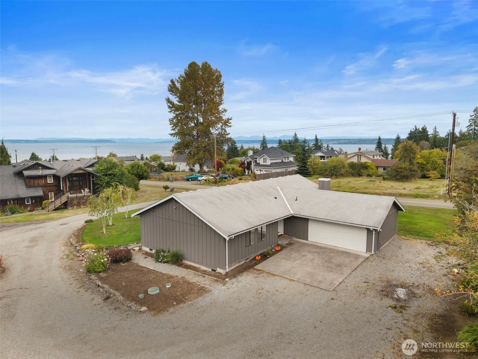 Welcome to this inviting 3-bedroom, 1.75-bath home offering 1,708 sq ft of comfortable main-level living on a .58-acre lot in Kingston’s desirable Jefferson Point neighborhood. From the living room and expansive front deck, take in partial water views of Puget Sound and Mt. Baker, creating a serene retreat right at home. Inside, you’ll find new flooring throughout, a beautifully updated primary bathroom, and stainless steel appliances. The thoughtful layout provides ease and convenience with all living spaces on one level. A large detached shop offers endless potential for hobbies, storage, or workspace. With its blend of updates, generous outdoor space, and stunning views, this home is one you won’t want to miss!