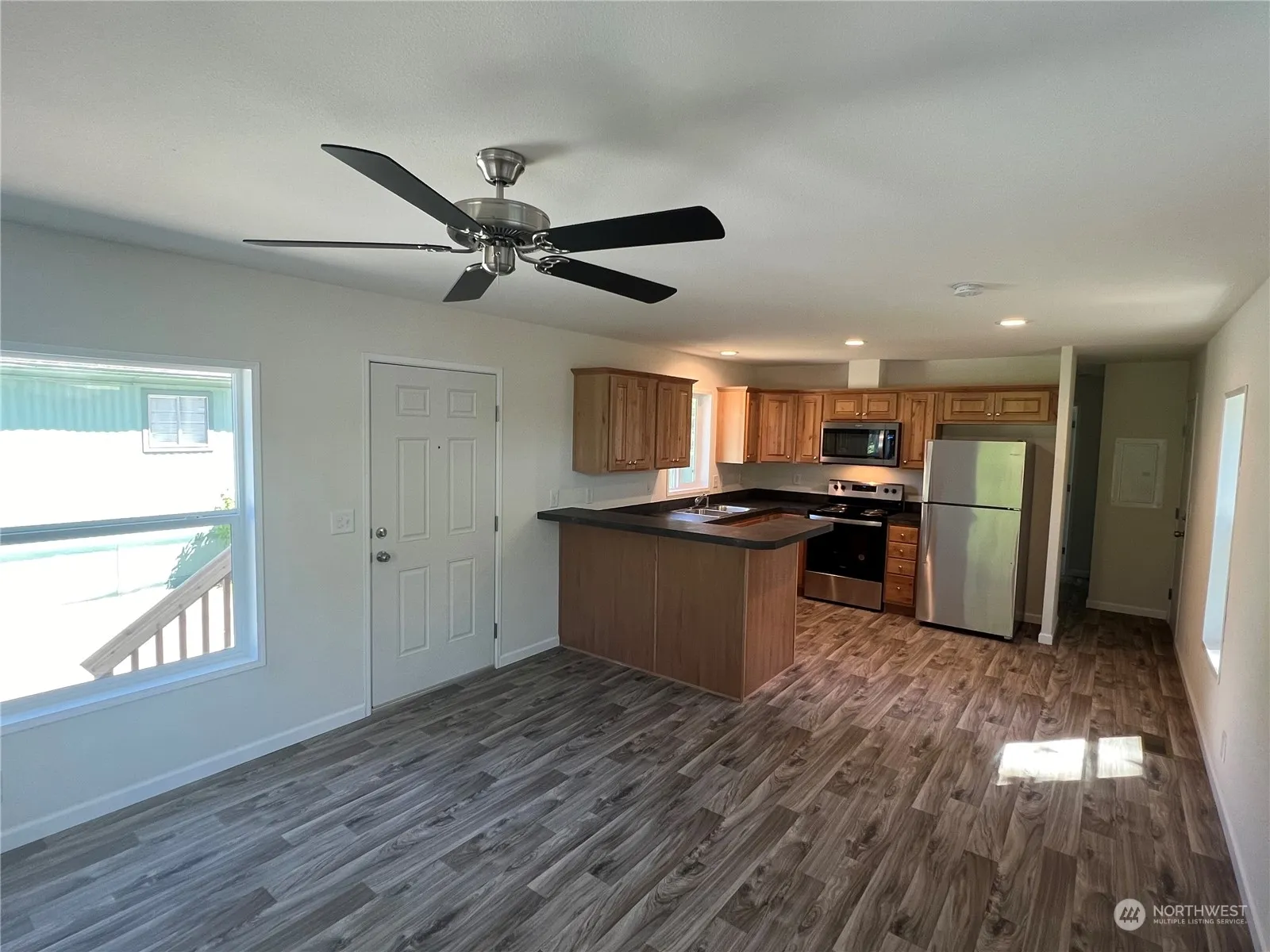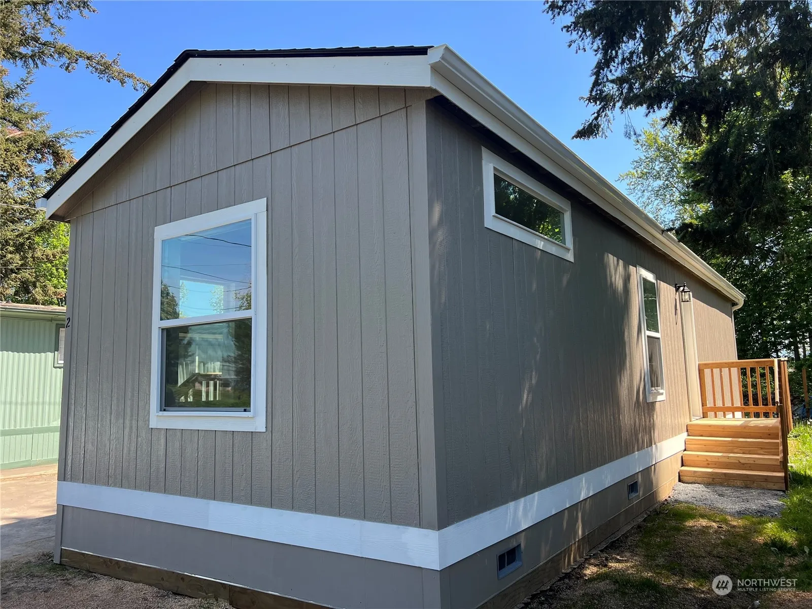 This charming home features a cozy yet modern ambiance, boasting a single bedroom and bathroom. Built in 2024, it offers the allure of newness, promising pristine conditions and contemporary design elements throughout. The kitchen is adorned with sleek stainless steel appliances, including a dishwasher, ensuring efficiency and style in meal preparation and cleanup. Additionally, the convenience of in-unit laundry hookups adds further practicality to daily living. Nestled within a tranquil park-like environment, this residence provides a serene retreat from the bustle of city life. Its proximity to the freeway enhances accessibility to nearby amenities and destinations, ideal blend of convenience and tranquility for discerning homeowners.