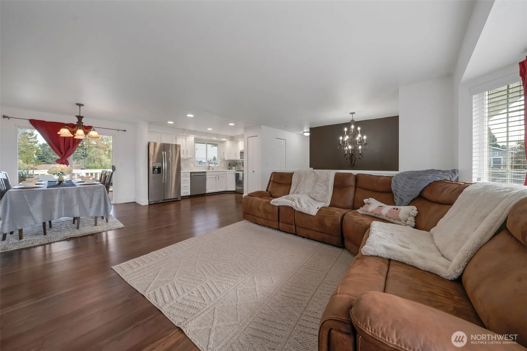 Enjoy stunning views of Mt. Rainier from this beautifully updated home, tucked away on a quiet cul-de-sac! Spacious open floor plan w/ remodeled kitchen and new appliances, this home is turn-key. Recent upgrades include Brand new water heater, furnace, heat pump-A/C for year-round comfort, plus designer laminate flooring on both levels. Newer Hardie Plank siding and roof. Deck is ideal for BBQs and outdoor dining. Backing to a large open field and fully fenced yard. 4 bedrooms there’s plenty of space for everyone. Bathrooms have been tastefully updated. Downstairs, you’ll find a spacious family room, full BA/Laundry rm, Large BR and 2 Car Grg. This home offers a peaceful, country feel while still minutes from town. Don’t Miss it!