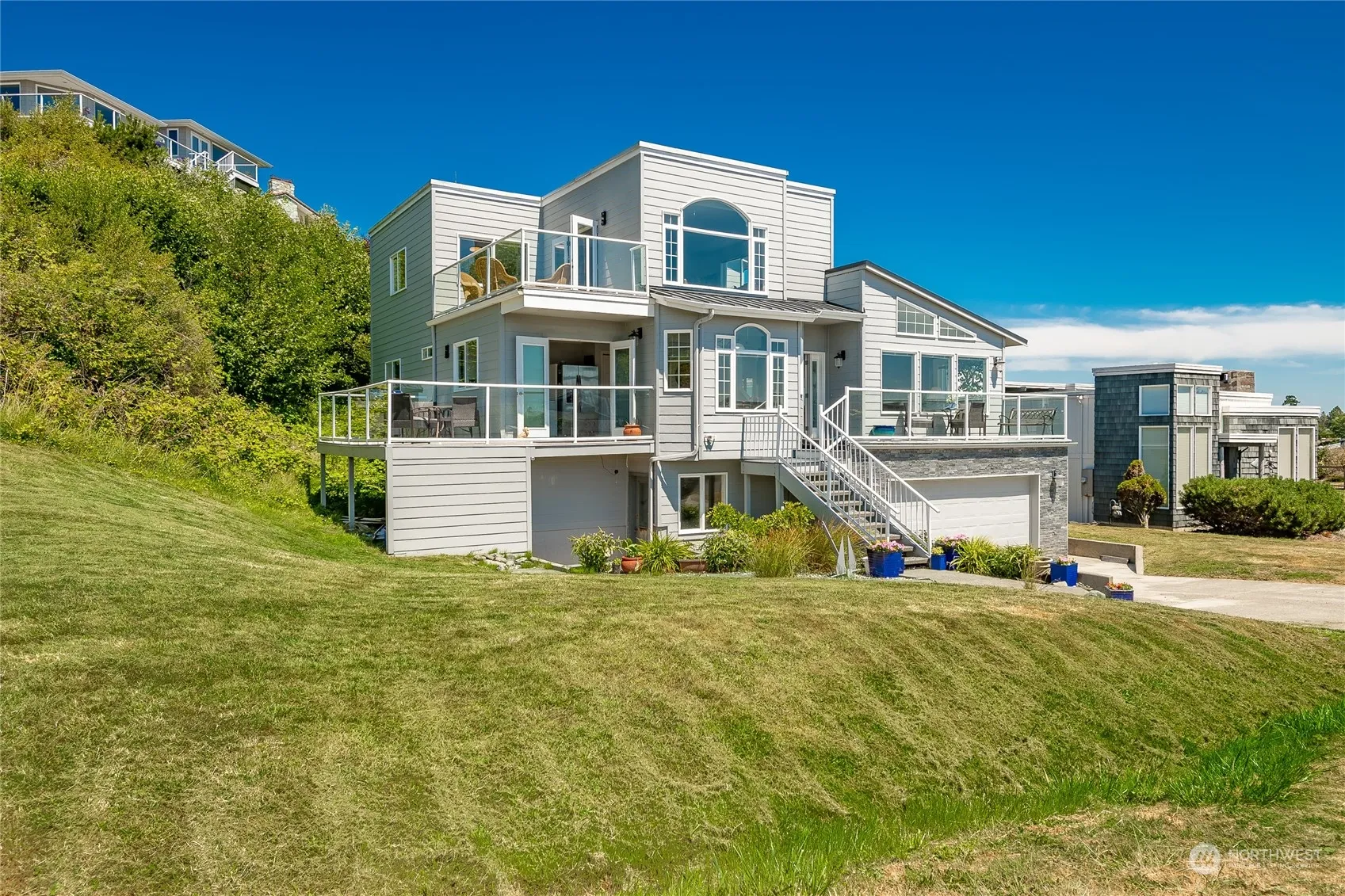 Custom Birch Bay Village saltwater view home 200ft. from beach access. Enjoy Inland Pacific sunsets nightly over Orcas Island & Salish Sea, multiple decks & fabulous top floor South facing sunny Island Vistas. 2408+ sq. ft. of beautifully finished living space +778 sq. ft. roughed in basement ready to expand into extra suite w/separate entry. Fabulous getaway or full time residence on street of multi million dollar homes. Enjoy “Peace of Mind” security of 24/7 guard gated entry. Private community golf course, pool, pickleball, tennis, clubhouse, dog park & NEW private marina. 15 minutes to U.S/Canada border & under 2 hrs. to Seattle. Fishing, clamming, crabbing, beachcombing & miles of beach to explore just 1 min. walk from front door.