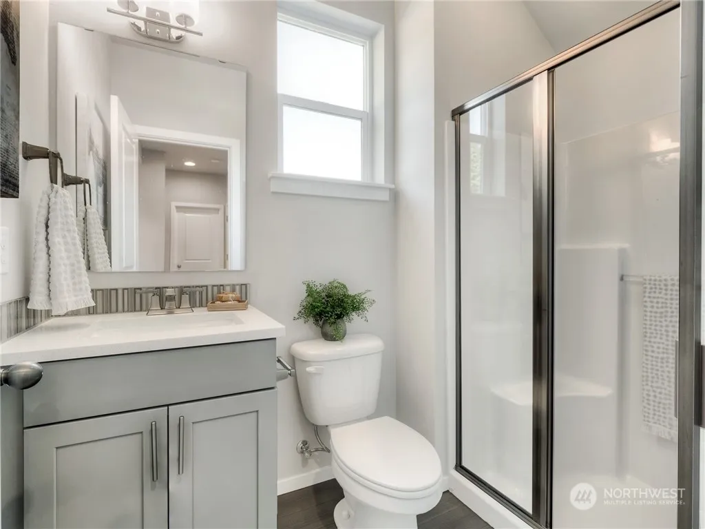 Five New Homes near Susan Lake in Tumwater.This plan features 2319 Sq Ft with 5 Bedrooms and 2.5 Baths, and a Large Loft Area. Kitchen with Island and eating area opens up into Great Room. Off the Kitchen Eating Area is a Covered Back Deck for your year round BBQ’s. Main Level has a Bedroom/Office with a 3/4 Bath across the hall. Primary Bedroom with large Bath upstairs along with 3 other Bedrooms surrounding the very open Loft Area. Walking distance to Pioneer Park with river access, Baseball and Soccer Fields, Horseshoe Pits, Volleyball, BBQ Grills, Picnic Areas, and Walking Trails. To view the plan come to Abernethy Crossing Open 11-4 weekends and 1-5 Weekdays. GPS:2347 Abernethy St NE.