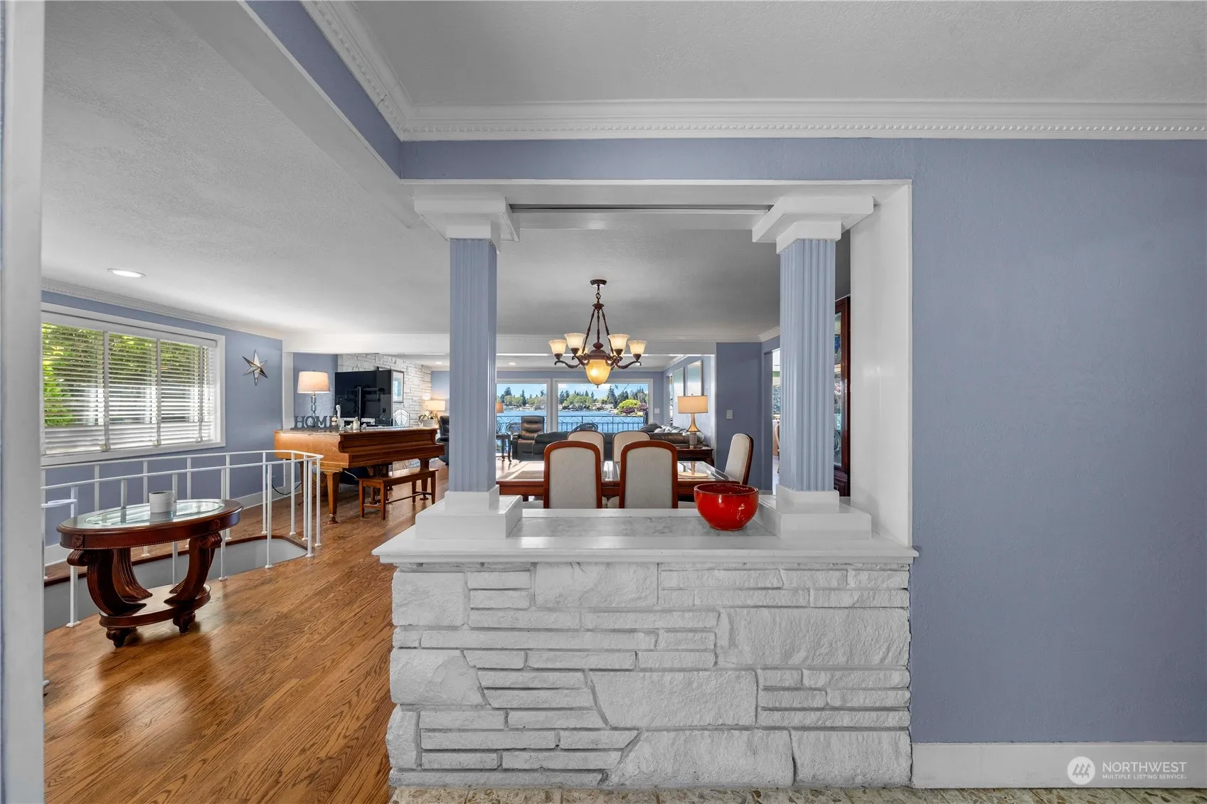 Nestled amidst the sunny side of Lake Steilcoom, this waterfront haven boasts one of the few operational boat houses left. This hidden gem promises to create memories that last a lifetime. Main entry opens to a grand space w/bay windows to enjoy the 80ft of waterfront view. A spiral staircase adds flair, guiding you to a vibrant great room, setting the stage for unforgettable gatherings. Kitchen has ample storage & hidden delights w/secret stairs leading to the lower level. New high efficiency furnace&A/C. Step outside to the inviting patio just steps from the waterfront; 2 docks w/slide, 2 Basta boat lifts,cabana & roof top boat house inviting you to sun-drenched relaxation as well as ample fishing for the angler. 4 covered parking spaces.