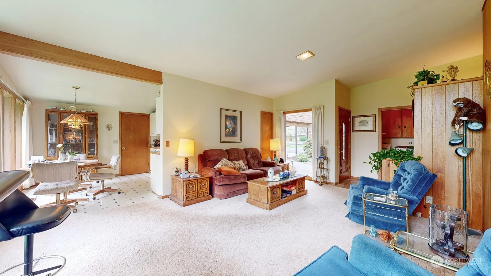Mid-century dream home in a prime Walla Walla location! This 3 BR 2 BA rambler has a large lot (.45), circular driveway, and lush, mature landscaping. Attached 2-car garage with extra storage PLUS attached 2-car carport! As you enter, be greeted by the natural light, vaulted ceilings, and spacious living areas. An island wall with dual sided fireplace is a cozy focal point. Kitchen provides attached dining area. A primary suite features its own 3/4 bath while large bedrooms and a main bath cater to the needs of guests. Outside is a backyard retreat where a patio invites dining, shade trees and lawn space beckon, and a babbling creek borders the property. Walla Walla living all within reach of the city’s amenities and attractions!