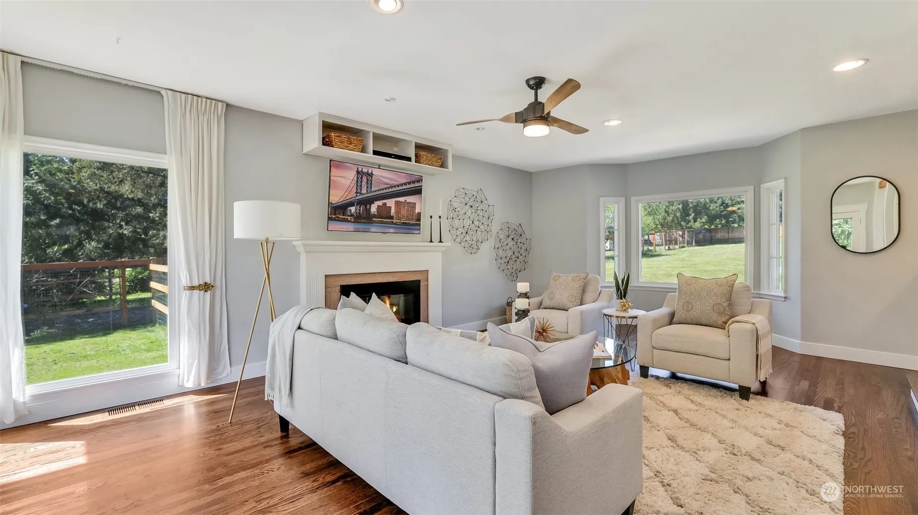 MAY VALLEY home on Acreage with a beautiful flat gentle sloping yard is hard to find in Issaquah School district. Mini-farm is ready for you with the front half fenced for pets and the back half mostly fenced for other animals. Home just had a new remodel to the Kitchen, bathrooms, floors, paint, trim, doors and landscaping. Main floor Primary with a luxury bath. Two more beds upstairs. You will find this well Sun-lit home very cozy and accommodating for large summer gatherings. Family room with fireplace or use as a home office. Lower floor with a workout room or use for an office. Storage rooms downstairs with separate entrance. Huge fenced garden space. Tesla charging and universal charging on site. Close to Squak Mnt park.RV parking