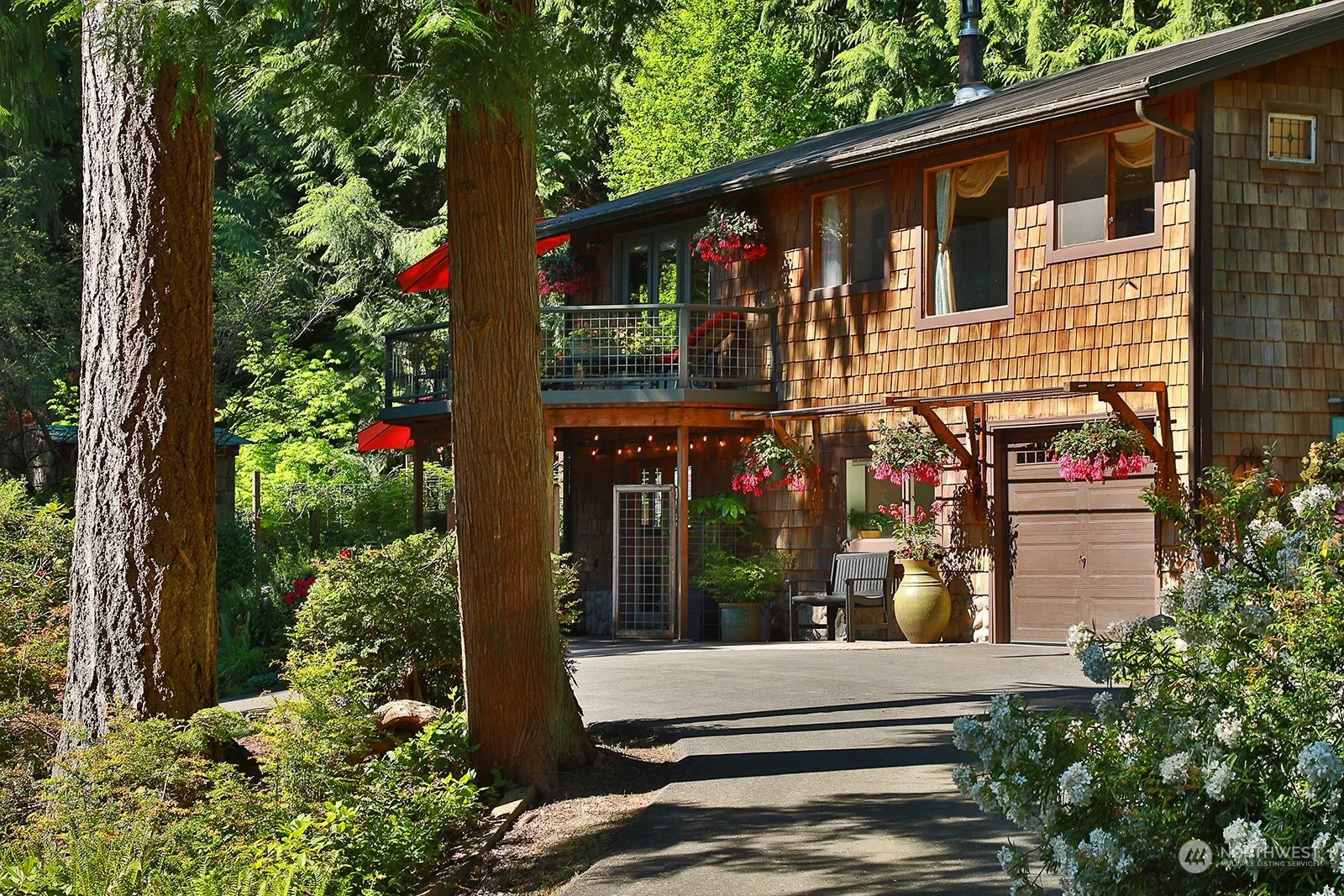 Perfect, peaceful retreat on 5 secluded acres. Landscaping is a gardener’s dream with low-maintenance year-round beauty. This house is designed to flow seamlessly into the outdoors with lush, woodland and garden views from every window. Entertain indoors and out. Enjoy everything you need for main-level living but there’s even more room on the lower-level with separate quarters. Remodeled and updated in 2022 including new, metal roof, sitting room with cozy fireplace, primary bathroom oasis and more. Enjoy the nearby public access to Lone Lake as well as the private community lakefront access.