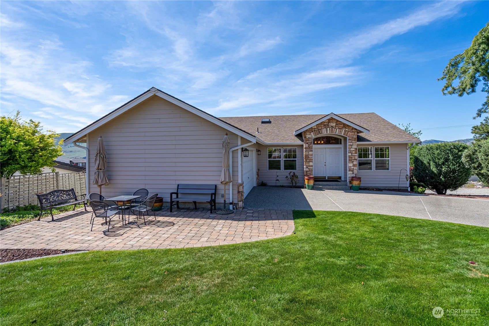 This immaculate home, w/ dramatic lake, mountain & territorial views, is nestled in a quiet neighborhood above the Chelan Golf Course. Covered entry welcomes you inside w/ vaulted ceilings, extensive millwork & hardwood floors. Open-living, great room concept with beautiful, sun-filled light throughout the main floor. Spacious kitchen features granite counters, island, walk-in pantry & built-in Butler’s pantry connecting to the separate dining room. Main floor primary suite has a full bath w/ access to the deck. Five bedrooms as well as an office give you plenty of room to entertain! Huge daylight rec room has a door to the beautifully maintained yard as well as 2 bedrooms and a 3/4 bath. Close to parks, golf & vibrant, downtown Chelan!