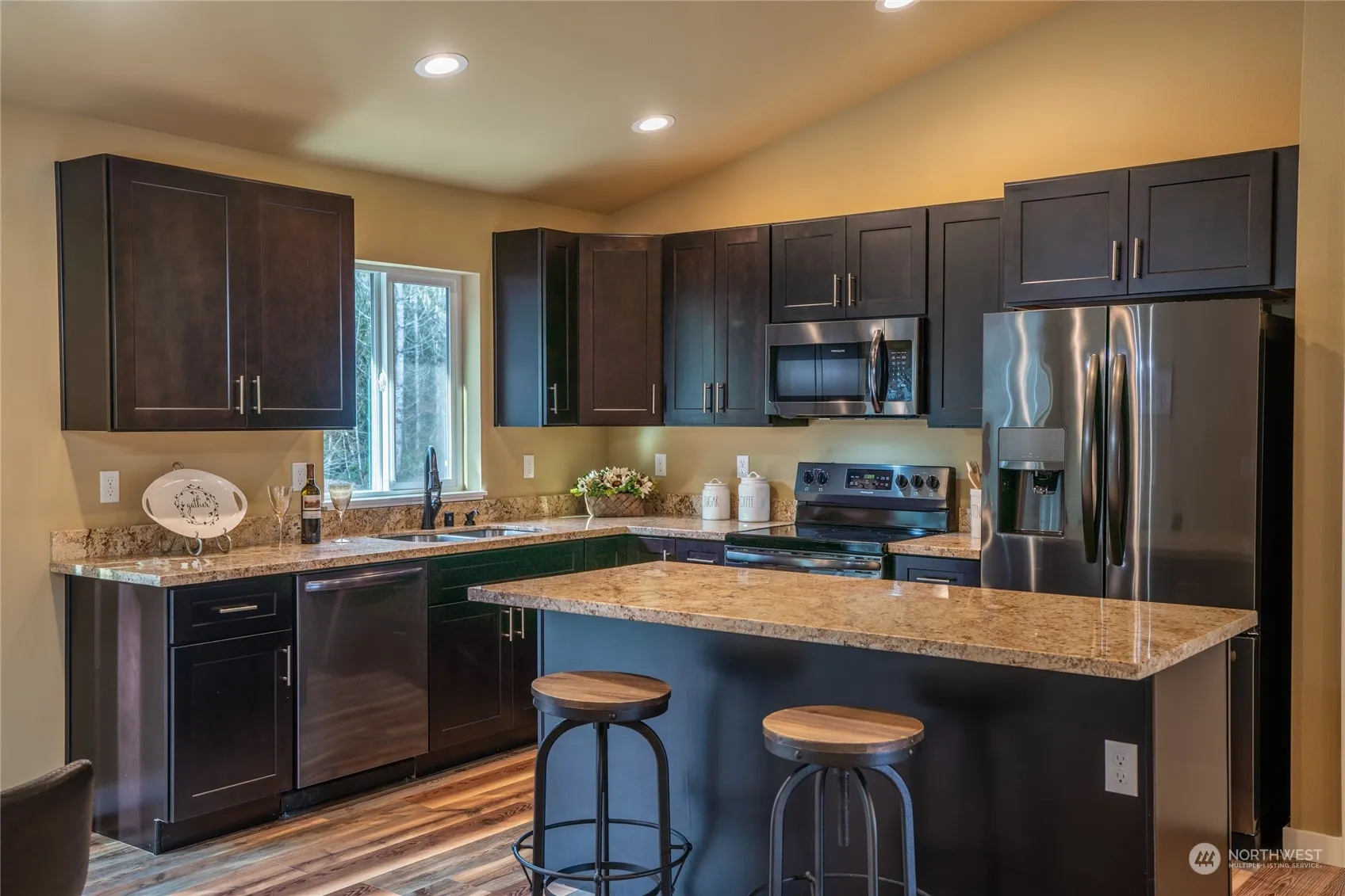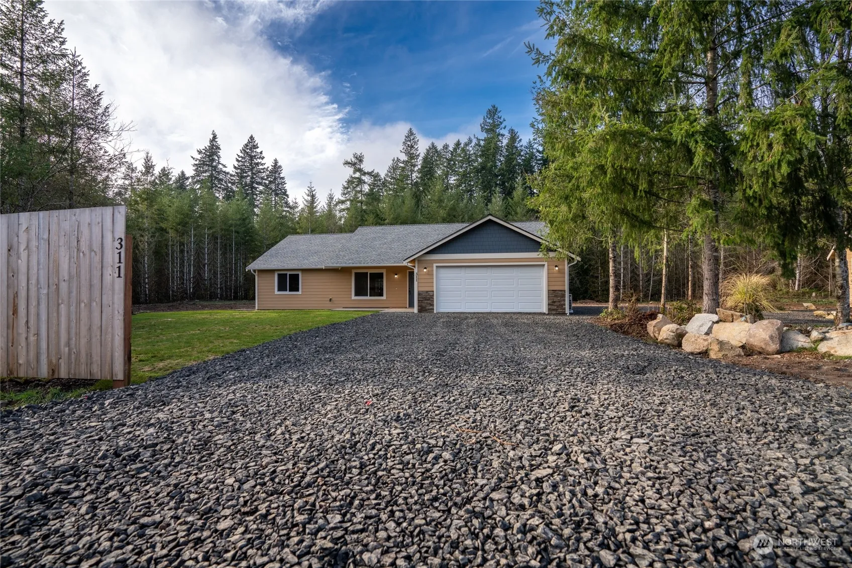 Step into a realm of modern elegance on 5 acres of land! A new rambler beckons, boasting a captivating open design with vaulted ceilings and exquisite vinyl plank flooring that sets the stage for luxurious living. The kitchen is a culinary haven, adorned with stainless appliances, quartz countertops, a breakfast bar, and a spacious pantry. Entertain effortlessly as a slider off the dining area unveils a rear patio overlooking the vast yard, primed for summer BBQs. Retreat to the primary bedroom oasis, where a generous walk-in closet and a spa-like en-suite bathroom await, complete with double sinks and a delightful soaking tub. This home has AC, Energy Star appliances, and RV parking – it’s a sanctuary of modern luxury!