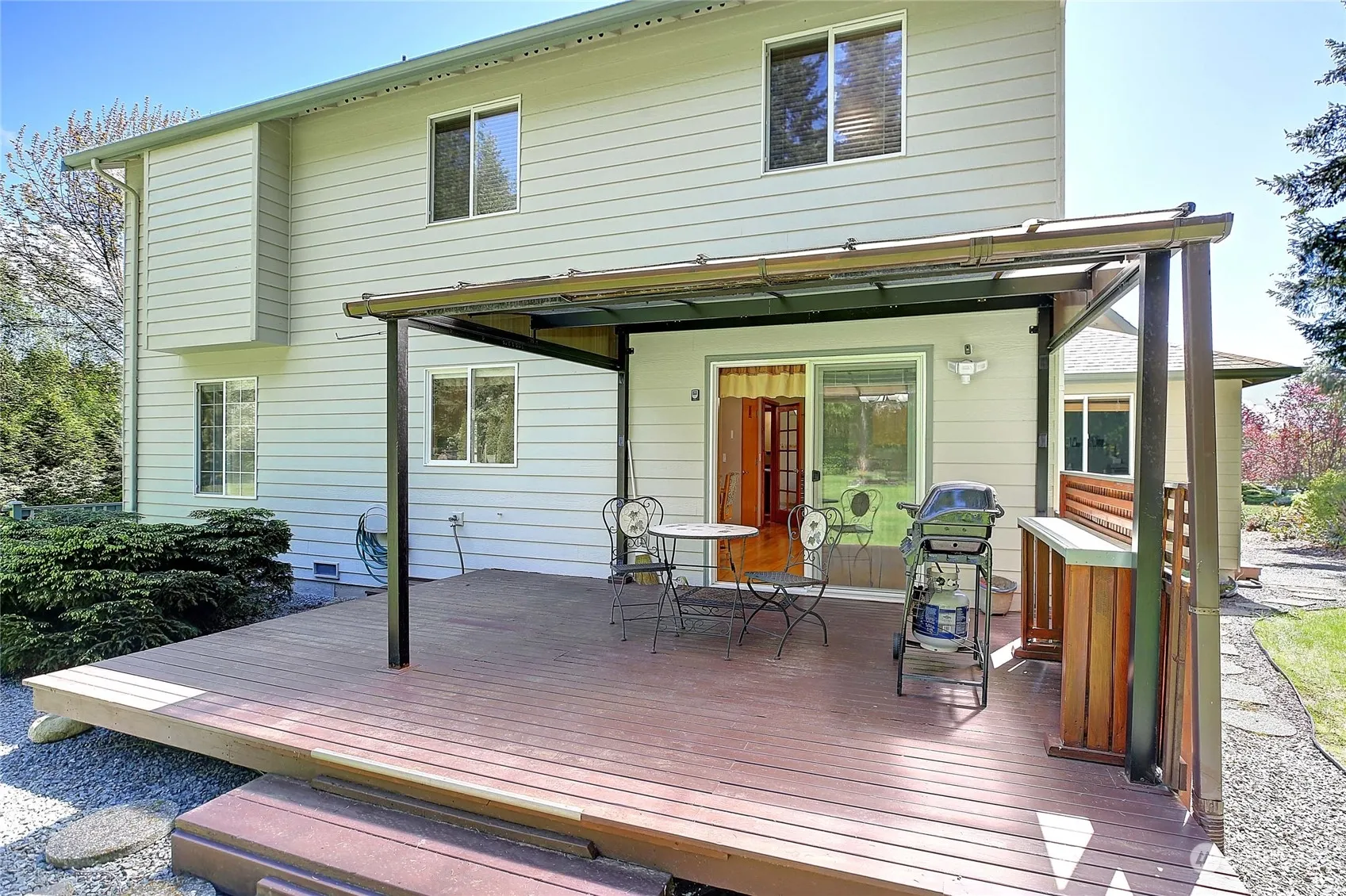 Wonderful home on 1.24 acres w/lawns, gardens, fruit trees, accessable forest. Exceptional Camano Hills Community, unique gated development w/trails/common areas, park w/pavillion. Kitchen, dining room accesses private backyard, w/clear covered deck; great outdoor connections. Office area in dining area & private office, outside entrance. Private master w/5 piece bath bath. 2 additional bedrooms. Family room above garage w/storage & adjacent closet. Large Custom Garden shed, w/garden prep area & tool/equipment storage. Unique opportunity, purchase home in this quiet community @ reasonable price. EZ access community trails: walk, drive to expansive sound & mtn views. Near free parks w/beaches, lakes, trails. Near stores, golfing, restraunts