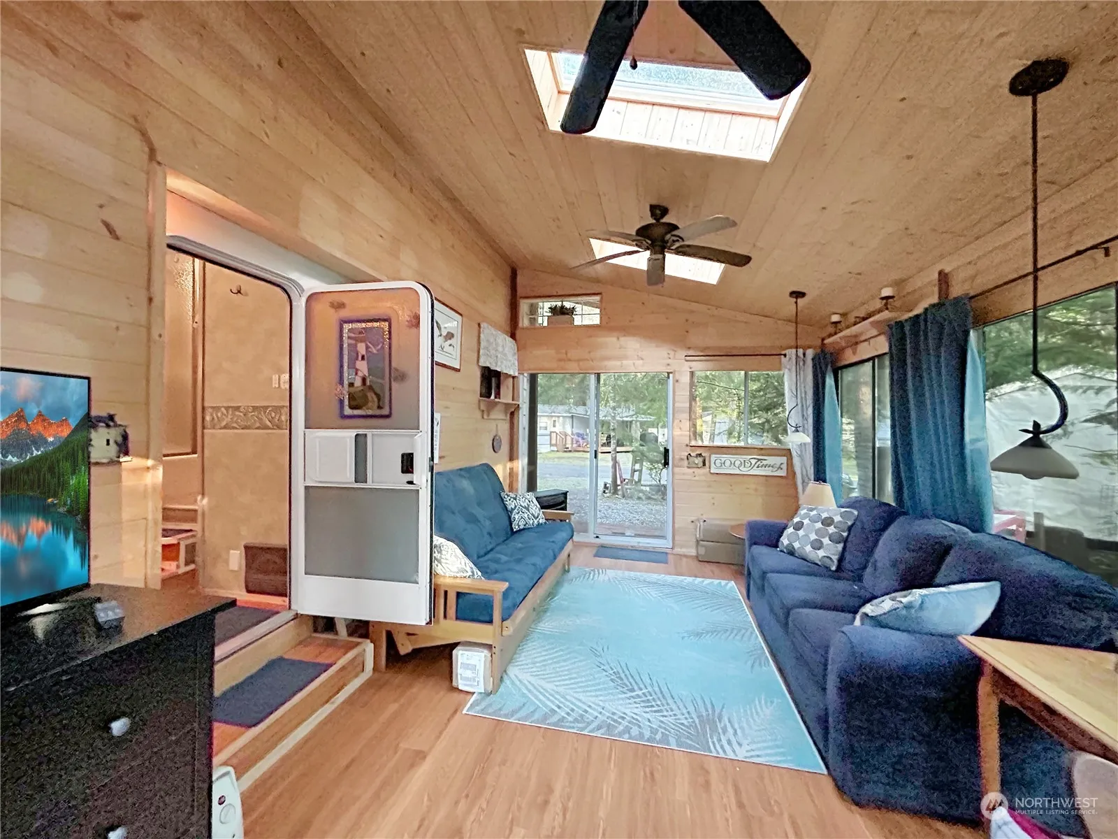 This well kept 2005 Keystone trailer sits on a bright, sunny lot and comfortably sleeps 7. Large add-a-room with wall-to-wall windows, vaulted ceilings, skylights, ceiling fans and gas fireplace. Tons of upgrades including new: flooring, futons, outdoor furniture, mattress, tankless water heater and more! Multiple gathering areas outside, plus a grill area and a storage shed. Community amenities include Nooksack River access, parks, trails, pools, playgrounds, disc golf & year-round events. Gated access w/ 24/7 security. Comes fully furnished & is located just 30 minutes from Bellingham & 15 minutes from the base of Mt. Baker & Silver Lake. Limited to 120 days/year occupancy. No rentals.