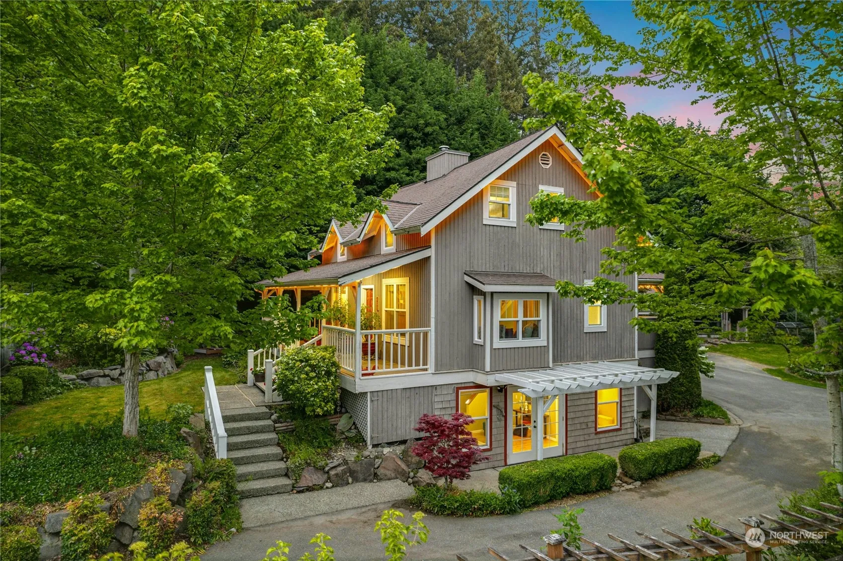 Welcome home to this 1908 historical charmer. Open floorplan w/ cozy living room, board & batten walls, window seating + covered outdoor deck. Delightful dining w/vintage wood paneling. Kitchen complete w/ss appliances, breakfast bar, white beadboard cabinetry & granite counters. Upper primary suite w/ lrg walk-in closet + a second bedroom w/ built-ins & huge walk-in closet space. Cheery daylight lower level includes 3rd bdrm, 3rd bath, home office space & family room. Incredible outdoor spaces w/ lush landscaping in full bloom, charming wrap-around porch, patio, huge backyard sanctuary w/enclosed garden. Detached 1 car garage w/shop, + plenty of add’l parking for your boat, RV, or trailer. Fully fenced w/ a gate at driveway. Pre-inspected.