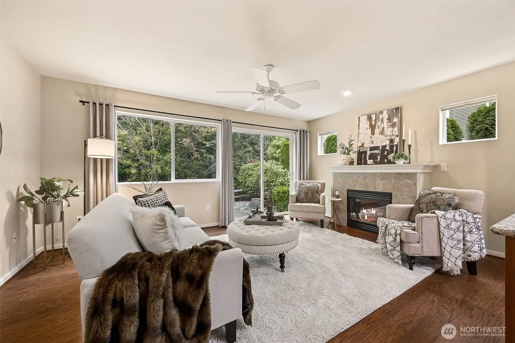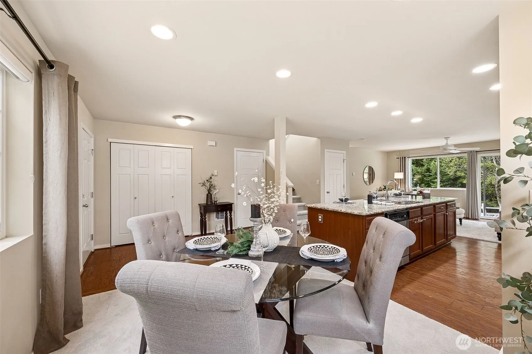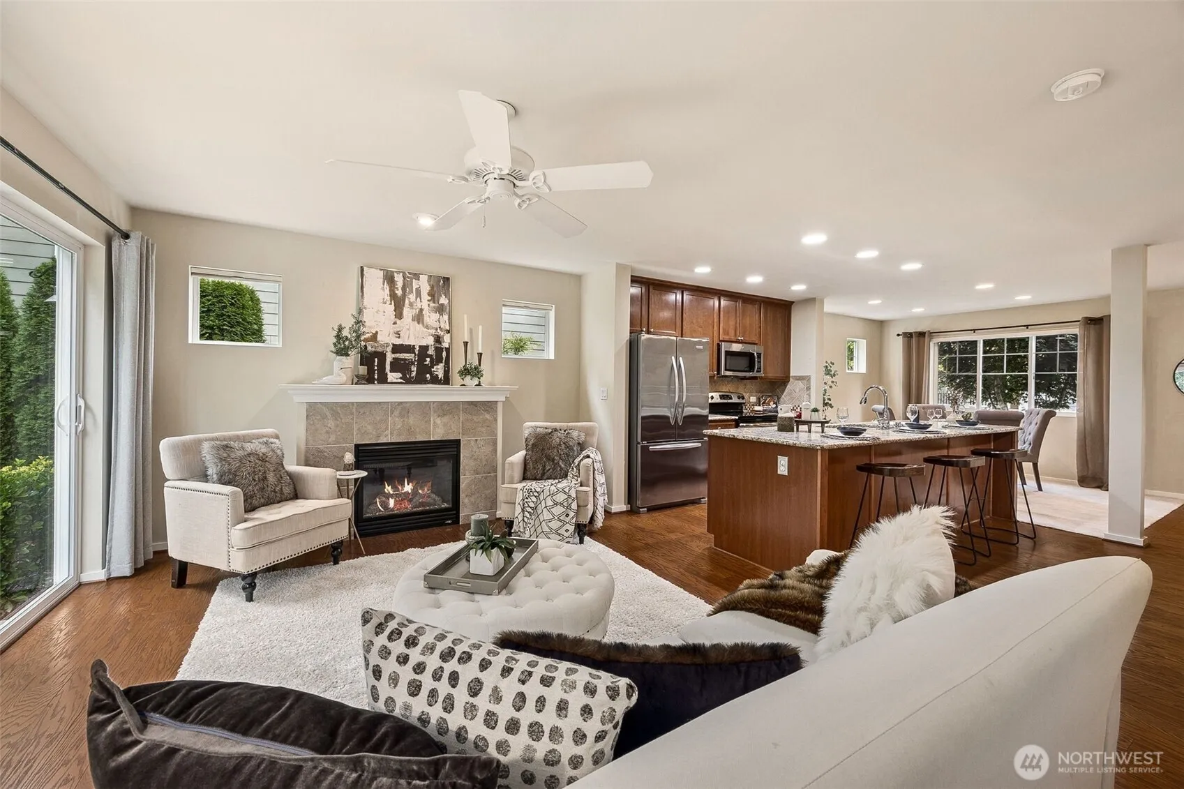 Welcome to this well cared for 2-story home in Harbor Crossing. Step inside onto laminate floors on the main level. Open kitchen concept with oversized island, stainless steel appliances, granite countertops & tile backsplash. Cozy up in the family room with gas fireplace & tile surround, with complete privacy out the back slider. 3/4 bathroom, recessed lighting & dining area/living room also featured on main level. All 3 bedrooms upstairs including the primary en-suite with dual sinks, tile countertops, walk-in closet & large step-in shower. Primary suite on backside of house overlooks low maintenance backyard backing up to greenbelt. Also on upper level is the 2 guest bedrooms along with full hall bathroom. Walking distance to shopping!