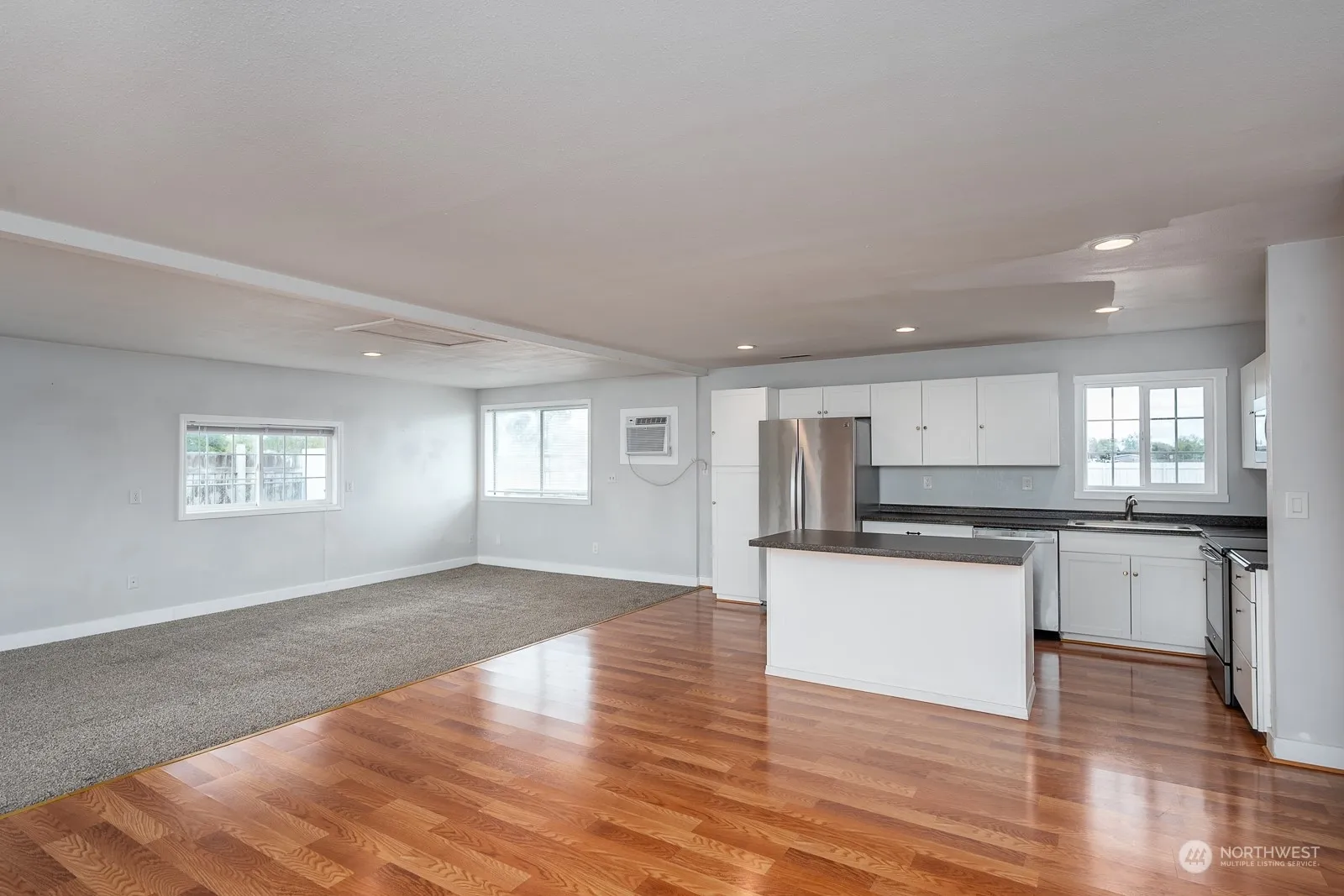 Great 3 bedroom 1 bathroom home on a huge corner lot! Open kitchen with tile and living room with large dining area. Interior features laminate hardwood throughout, updated windows, large living area and an updated kitchen and bathroom with a tiled shower. Fully fenced front and back yard with a sprinkler system, low maintenance vinyl siding and off-street parking. So much potential in this back yard! Possibilities are endless!
