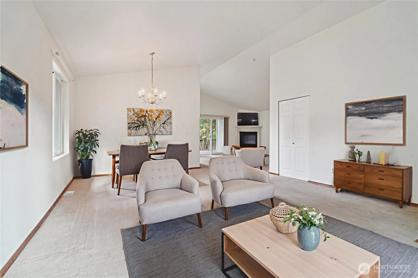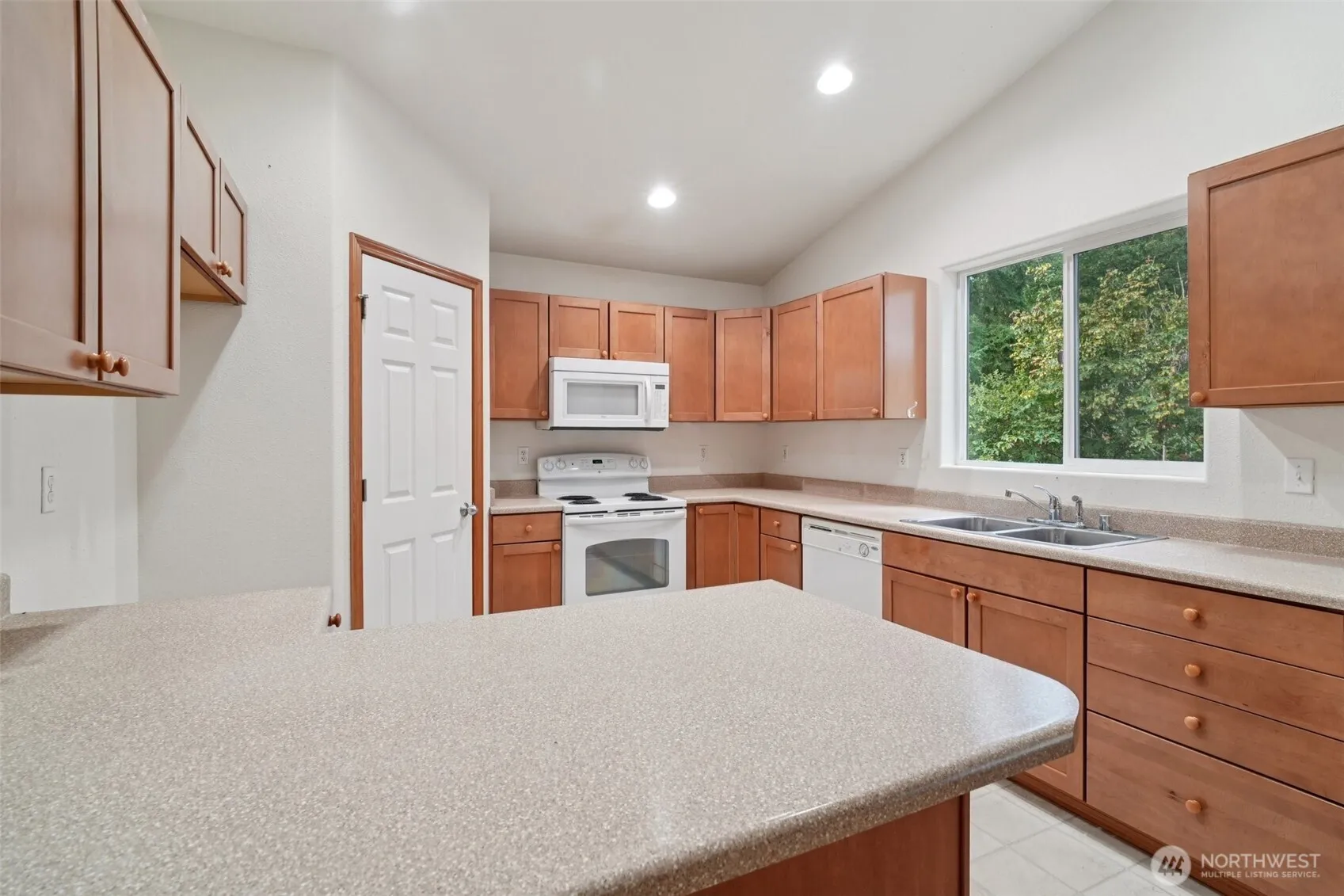 Welcome to this beautifully maintained rambler located in the gated Clearwood Community. Enjoy access to 3 lakes, boat launch, pool, hot tub, sport courts, trails & playgrounds. Walk 2 minutes directly from your back yard to the beach for SUP & fishing. This single story home welcomes you with soaring vaulted ceilings & private views out each window. The open-concept layout connects the kitchen, dining, & 2 living room areas, creating a welcoming space for gatherings. Step out back on the large covered patio where your backyard faces serene greenbelt views. Enjoy a 2-car garage, central A/C, newer water heater, leaf guard gutters, & a newer roof. Experience living with resort-like amenities with a short commute to JBLM, Tacoma and Olympia.