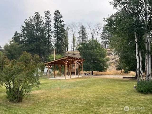 TWISP – The best of both worlds! Close to town yet perfectly peaceful, this lush 0.40-acre lot is ready for your immediate enjoyment while you plan your future home. Surrounded by mature trees and irrigated via MVID, it’s the ideal blend of convenience and tranquility. All the essentials are already in place—power, private well, 3-bedroom septic system, and RV hookup—making it turnkey for a weekend escape. The thoughtfully built custom RV cover, tucked toward the back of the lot, was designed with the future in mind and can easily be converted into a permanent living space. Located just outside town limits, you’ll love the serenity while still being within walking distance to Twisp’s restaurants, shops, and amenities.