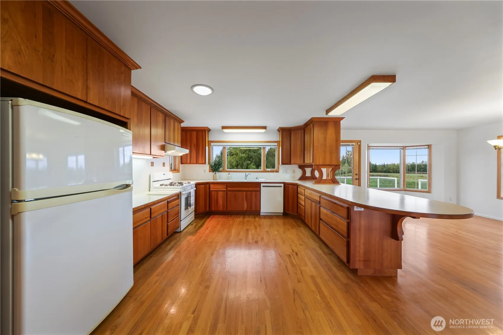 Set on 1.5 acres in a desirable mid-county location, this 3bd, 2.5 ba home features 2,150 sqft of single-level living with 2100 sqft unfinished basement. The open-concept design flows seamlessly to a spacious deck with peaceful territorial & mountain views. Inside, the kitchen offers custom maple cabinets & generous counter space. Skylights & large windows flood the home with natural light, highlighting the hardwood floors & custom cabinetry found throughout. The over-sized attached 2-car garage plus a 26′ x 32′ heated shop w/ bathroom, provide ample space for storage, projects & hobbies. Outside features mature fruit trees, raised garden bed & chicken coop. Located in the Meridian School District, just minutes to schools.