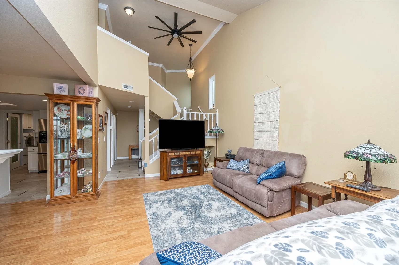 The condo boasts 3 spacious bedrooms, 2.5 lavish bathrooms including a 5-piece owner’s bath suite with a Jacuzzi tub, skylights, and vaulted ceilings. A gourmet kitchen awaits you with granite counters, ample cabinetry, a wine fridge, and under-counter lighting. Features include hardwood floors with designer inlays, crown molding, wrap-around wood-burning fireplace, a functional loft area, and a dining room. Further, enjoy the air conditioning, ceiling fans, community dock, and breathtaking lake views, 2 car garage, and beautiful back deck with ample seating areas. Discover this rare gem; your ultimate sanctuary of elegance and tranquility ready for you to move in. Seller will cover $2000 of HOA dues. One Year Home Warranty provided.
