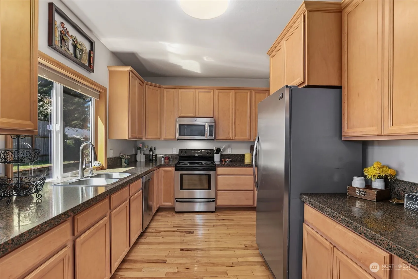 Welcome to this charming 4-bed, 3.5-bath Lakewood home! Relax in the spacious living room with a cozy gas fireplace. The kitchen features stainless steel appliances and an inviting eating space, with French doors leading to a yard adorned with a covered patio. Enjoy the convenience of an office/flex space and a primary suite on the main level, complete with a full bath and two walk-in closets. Upstairs, discover three additional bedrooms, including a second primary suite with a full en-suite, and another full bath. Central A/C for the warmer days. Attached 2-car garage. With close proximity to JBLM, parks, shopping, and more, this home offers comfort and convenience!