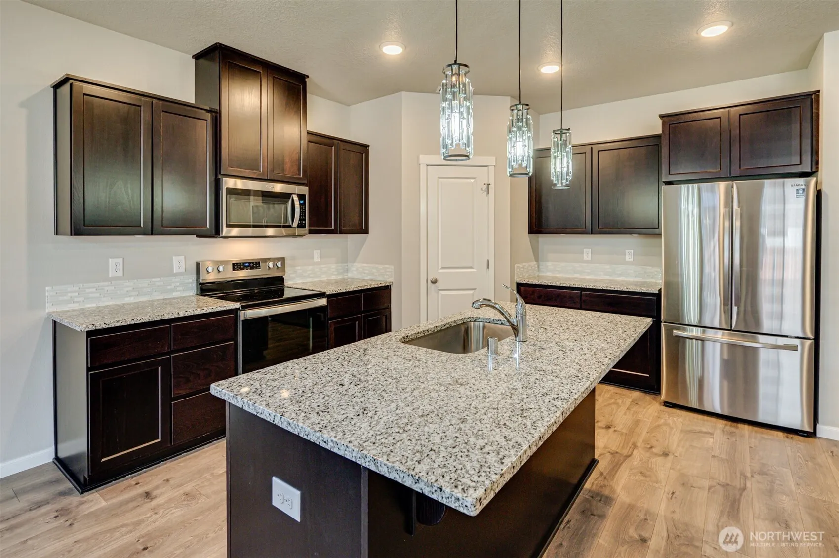 Better than new (seriously—upgrades everywhere!) with A/C + heat in the garage, turf backyard, and TWO covered patios for year-round fun. Great room boasts a granite island, stainless appliances, walk-in pantry, and a cozy gas fireplace. Primary suite has a walk-in closet + shower, plus 2 more bedrooms and a full bath. Fenced, low-maintenance yard. Close to shopping, dining, parks, and commuter routes.
