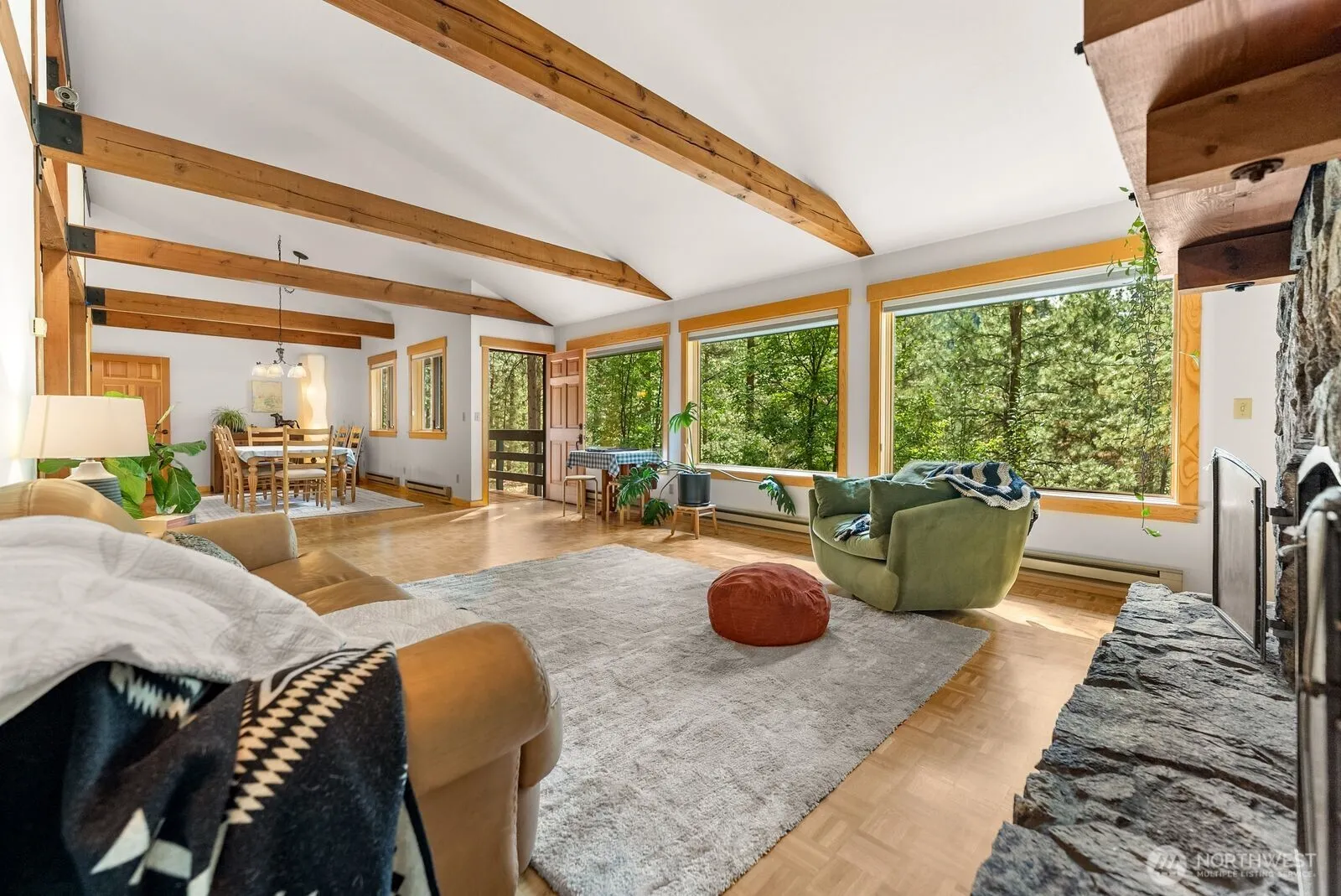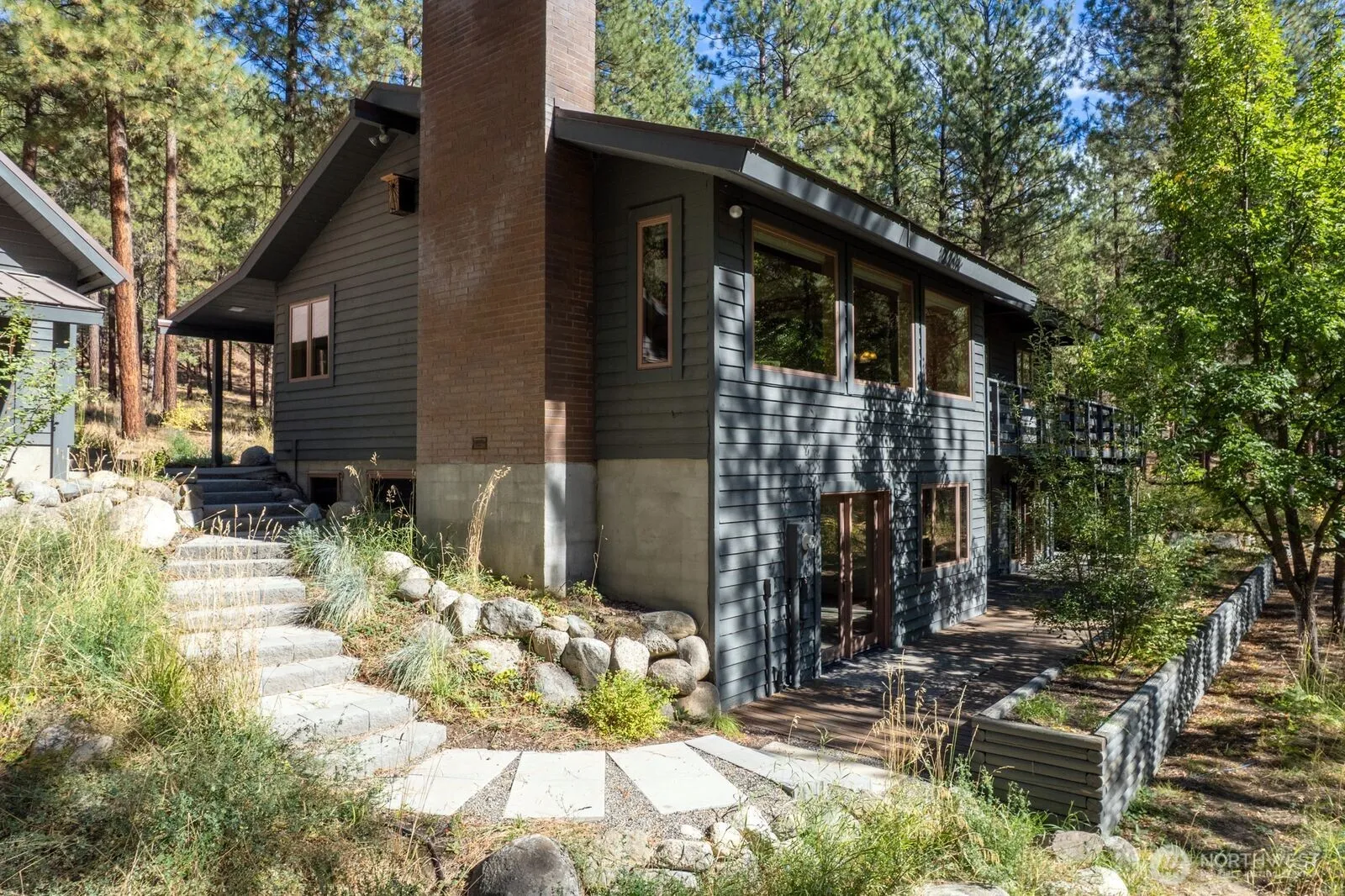 Twisp 2,912 sf Timber-Frame Home is all that! Imagine, being in a peaceful, quiet place on 5 Acres, bordering thousands of acres of forest land, in a stunning 4 Bed/3 Bath home. 1456 sf Main level, Living room speaks comfort, as you relax in front Methow-rock fireplace. Dining room enjoys glowing hardwood floors reflecting natural light through big picture windows. Large Kitchen, solid wood cabinets, hardwood floors, w/Pellet fireplace brick hearth & dining table. Wood deck off Kitchen for Summer outdoor dinners. Primary bed ensuite Bath, walk-in closet, private terrace. Spacious Bonus room plumbed for wet-bar. Wood Fireplace. 1456 sf Walk-out Daylight basement has white wool-carpet for ultimate luxury. 2-carGarage. Root cellar. Storage.