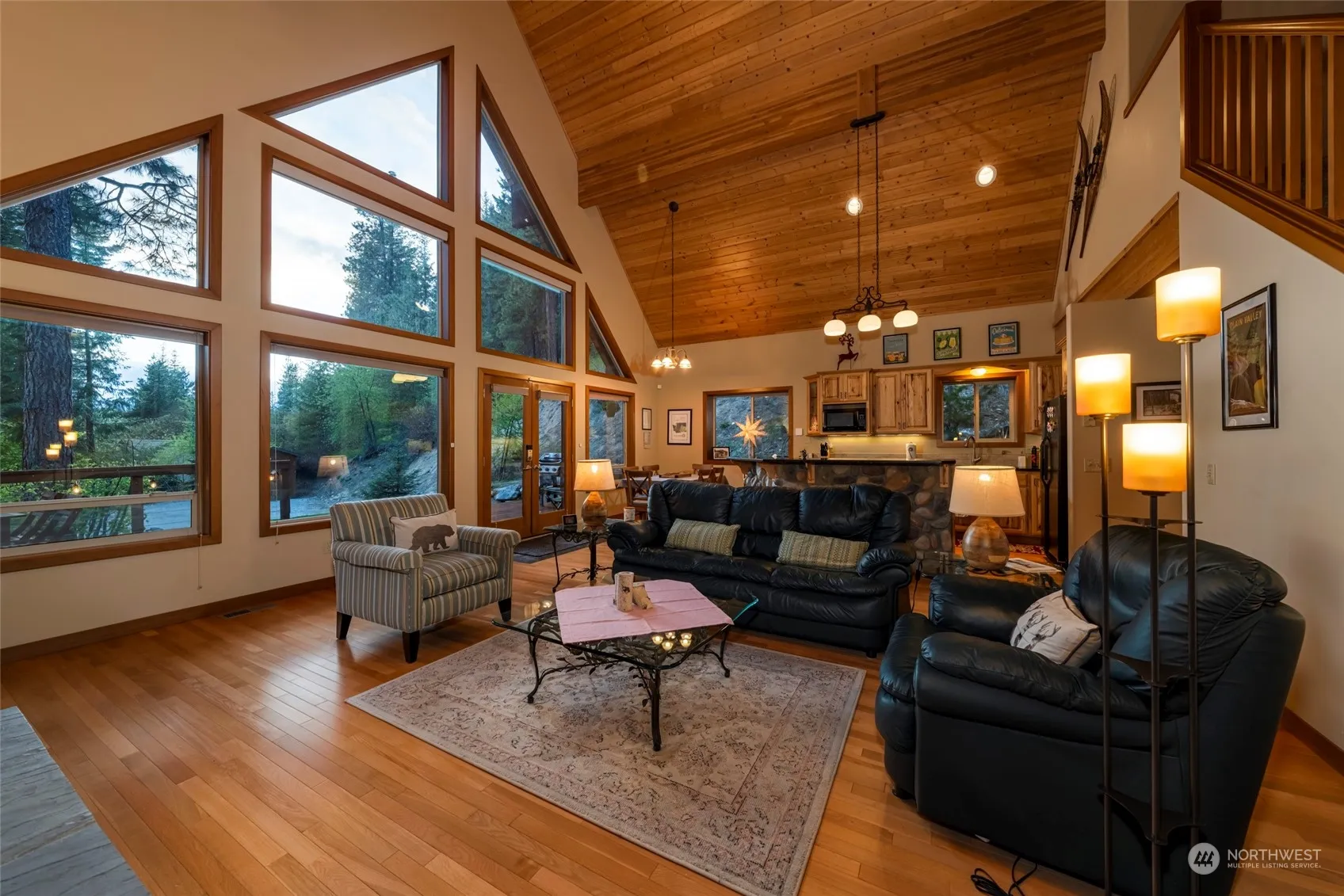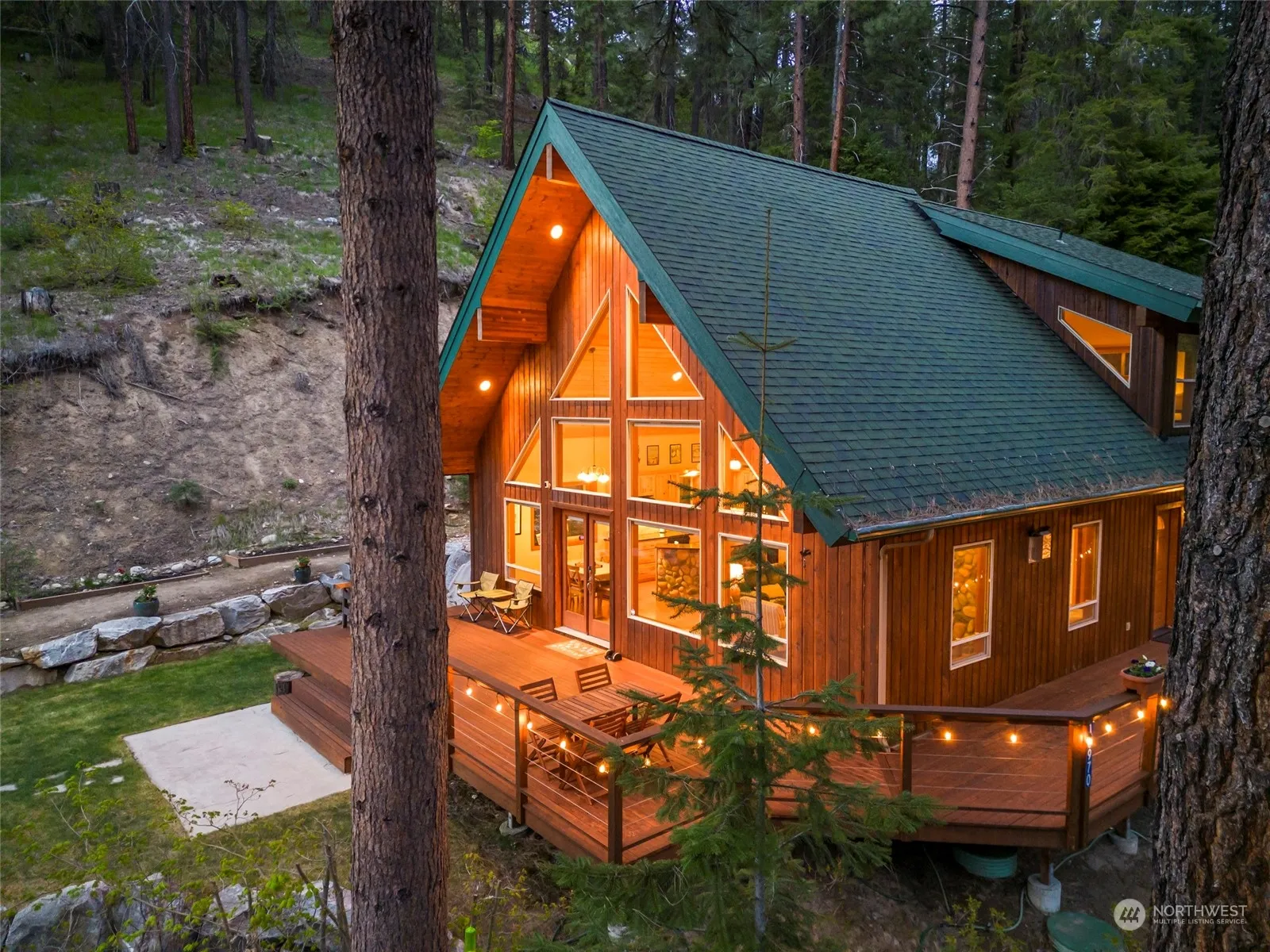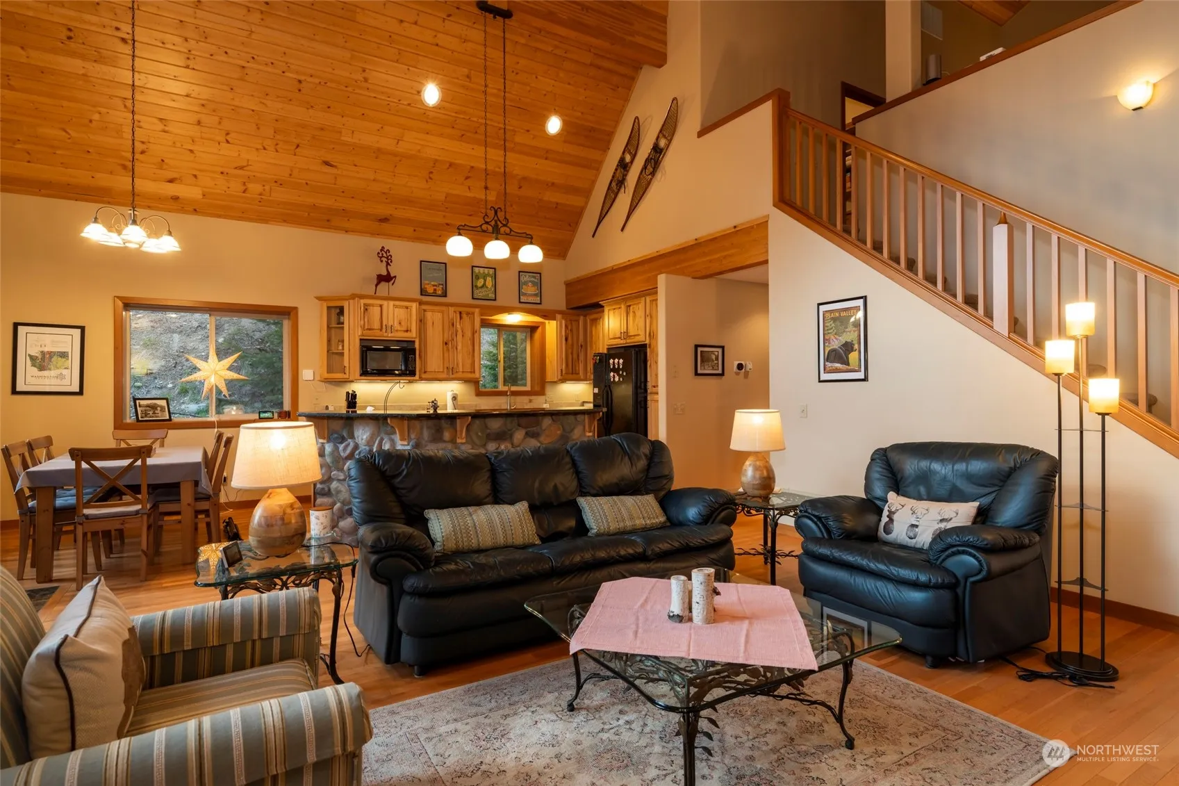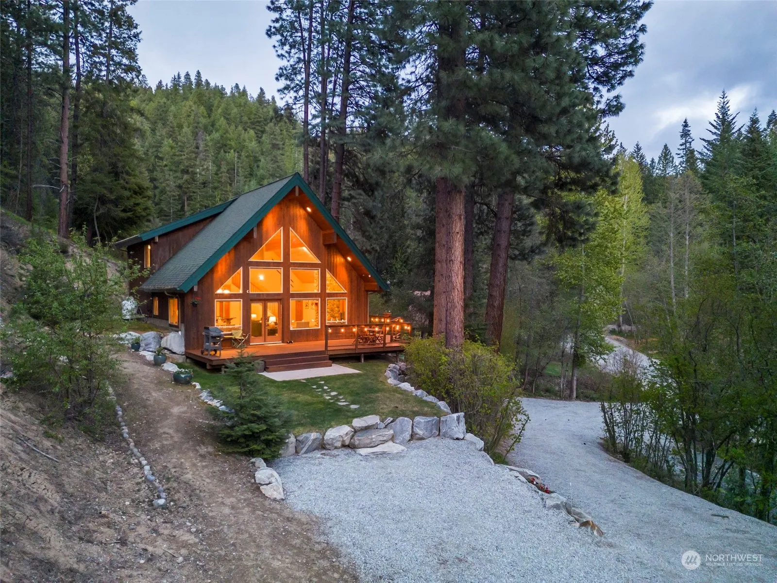 Discover this sophisticated, fully furnished chalet perched on a lush/secluded 1+ acre lot in the heart of Leavenworth’s recreational wonderland. Entertain in the luxurious kitchen/dining/living space featuring a soaring vaulted ceiling, warm hardwood flooring, granite counters, and genuine river rock accents, including a stunning floor-to-ceiling gas fireplace. Two convenient main-level bedrooms, shared bath, and utility room. Upstairs houses a wonderfully spacious primary loft retreat featuring a 5-piece bath and walk-in closet. Relax on the generous outdoor deck or explore the great outdoors. The property offers high-speed Internet and plans for a future garage. Make this refined rustic retreat your year-round Leavenworth escape!