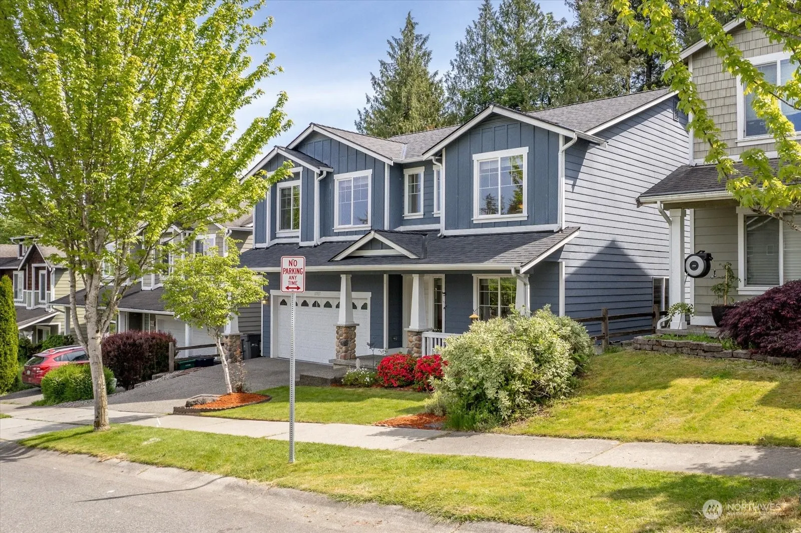 Comfort, Convenience and tranquility in Outlook Ridge. Step inside this meticulously maintained home to gleaming tigerwood hardwoods. Turn to the cozy Living Room or continue on to Great Room Living and entertain in comfort & style. 1 BR on the main floor (staged as office) is next to 1/2 Ba (plumbed to add shower for the perfect MIL). The peaceful yard with extended patio backs to greenspace where you can unwind. Upstairs a huge Bonus Room provides hang-out space or convert for additional guest space. Primary suite is generous with custom wardrobe organizer. Boasting 5 BR’s & 2.5 Ba, you’re just steps to neighborhood parks and minutes to dining, entertainment and shopping. New 40 yr roof, new carpet & interior paint. Washer & dryer incl.