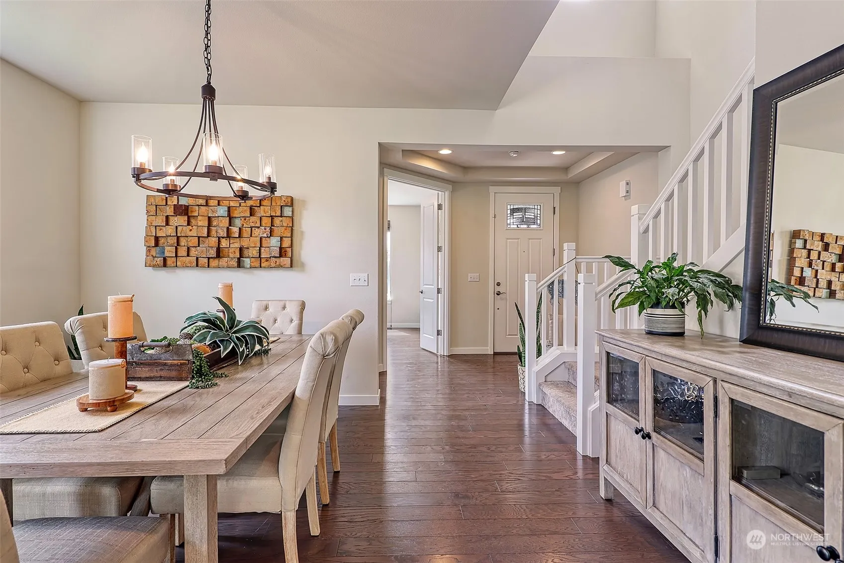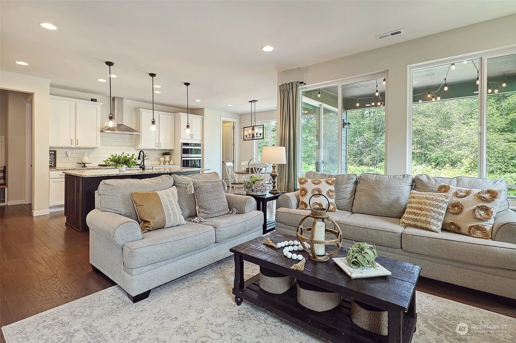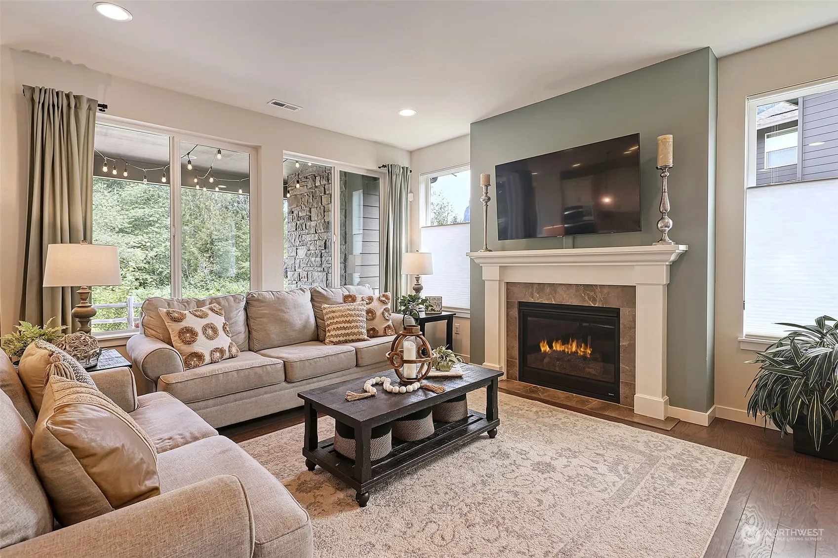 Discover your dream home! This stunning residence, set against Mount Si & a private greenbelt, offers exquisite finishes & thoughtful upgrades. The main floor features an open layout with 9 ft ceilings, a den, dining area, living room & a kitchen with a custom butler’s pantry. The garage entrance leads to a custom mudroom & the 4th bedroom with a 3/4 bath, currently serving as a home gym. The 2nd level includes the primary suite with a luxurious bath & custom walk-in closet, a bonus room, laundry room, 2 bedrooms with walk-in closets, & a full bathroom. Outside, enjoy a covered extended patio with a gas fireplace & Mt Si view. Located in desirable River Glen, close to parks, pickleball court, Snoqualmie Valley Trail, & downtown North Bend.