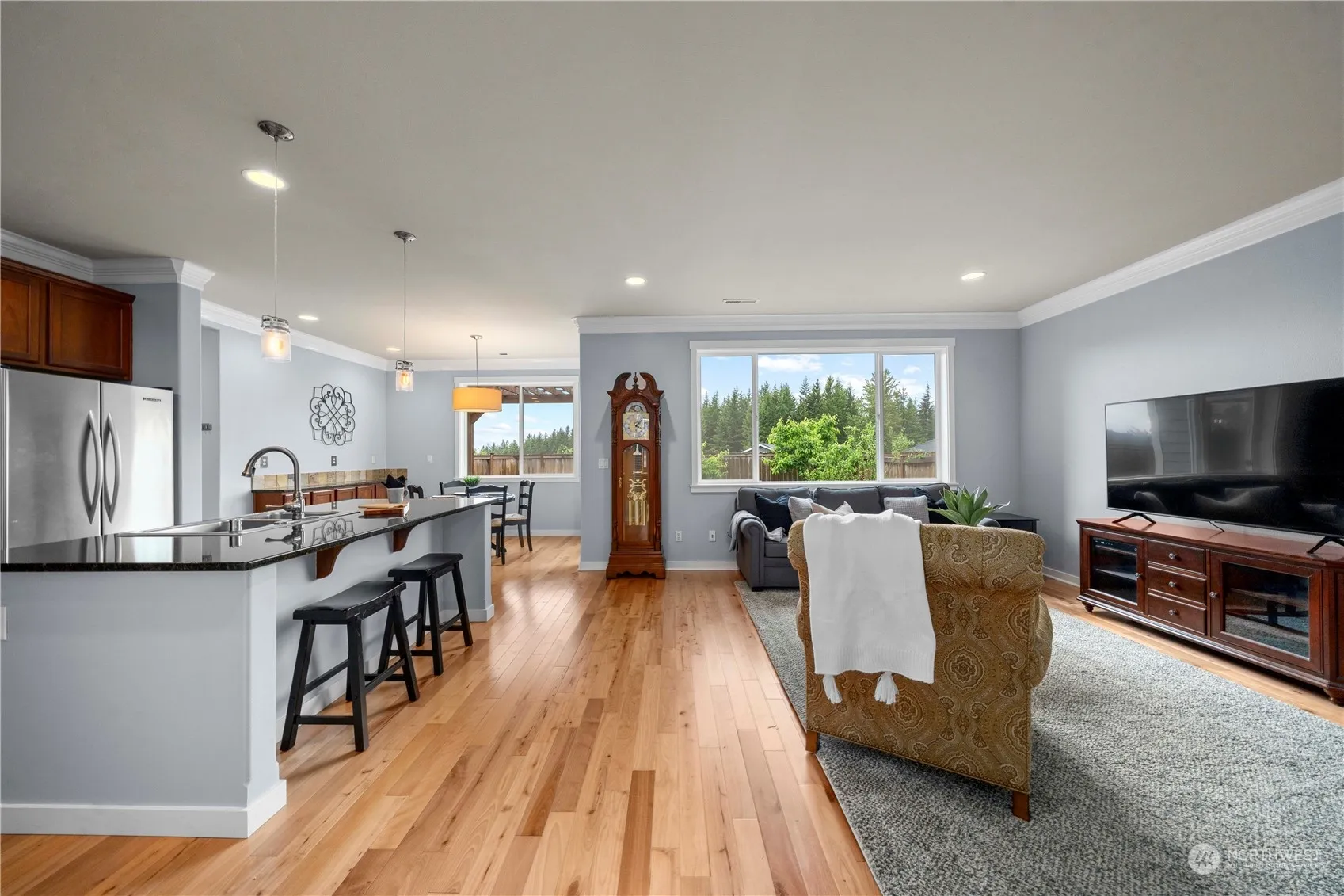 Welcome to coveted Maple Ridge Highlands! This home offers territorial views and is situated on a quiet cul-de-sac. With 4 beds, a den, bonus room, rec room & 2.75 baths, there’s space for everyone! Hardwood flooring & crown molding adorn both levels- touches of elegance. The chef’s kitchen features slab granite counters, wood cabinets & stainless steel appliances. Main floor guest bedroom offers a murphy bed & a 3/4 bath! Owner’s ste- remodeled bath! The bonus room is currently used as a theater room. The fenced yard boasts an expansive patio with arbor perfect for outdoor entertaining! Additional highlights include two separate garages, air conditioning, and access to top-rated Tahoma Schools. Enjoy many parks and trails in the community.