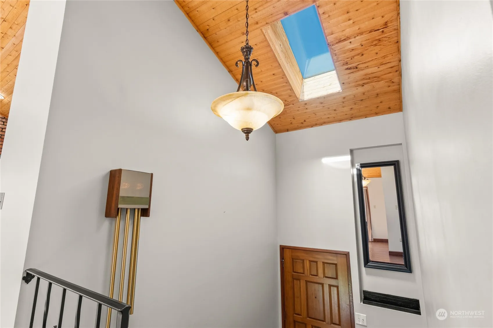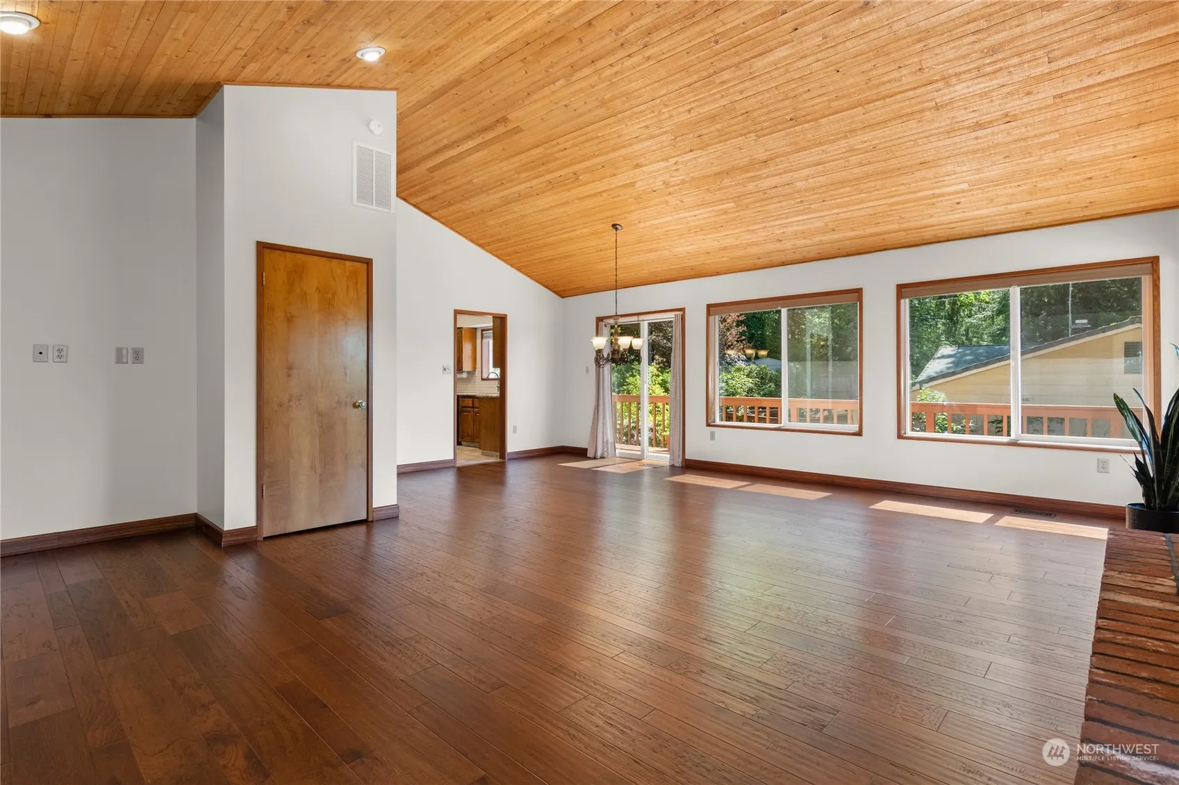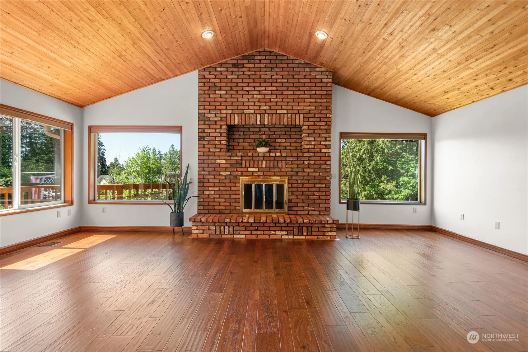 Exquisite home with multi generational living prospects! Remodeled NW Contemporary home boasting 2832 SF, 3 bdrms, 3 bthrms, light & bright living rm w/vaulted cedar ceiling-walls of windows-engineered hardwood floors-soaring brick fireplace, gourmet kitchen w/granite counters-custom cabinetry-tile floors, spacious dining rm w/slider to expansive viewing deck, primary bdrm w/ensuite on main-tile shower-tile floor-granite counters, lower level family rm w/wet bar-kitchen area-FP w/pellet stove-door to covered patio, den/office-possible 4th bdrm, sauna/mud rm, laundry rm, heat pump, central vac, 50 yr presidential roof, 2 car garage & extra storage rm, manicured grounds & fully fenced back yard w/sprinkler system on a dead end street.