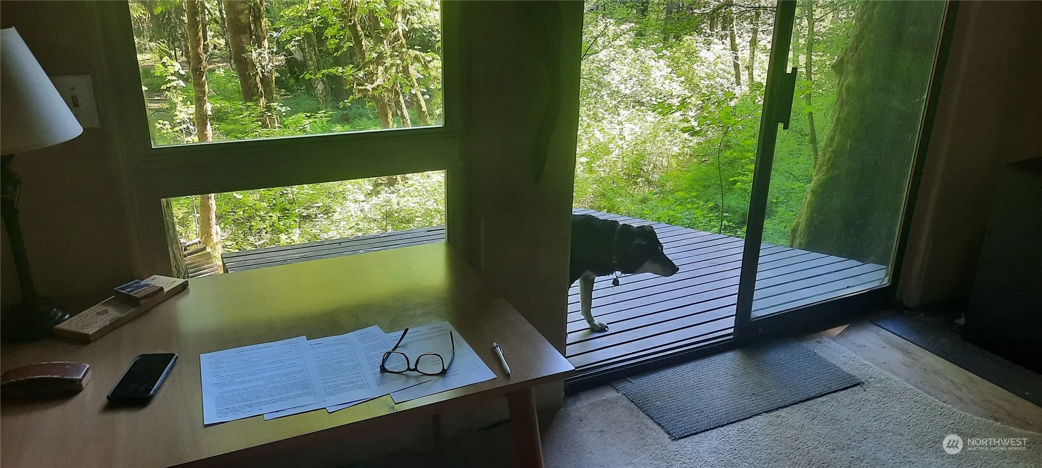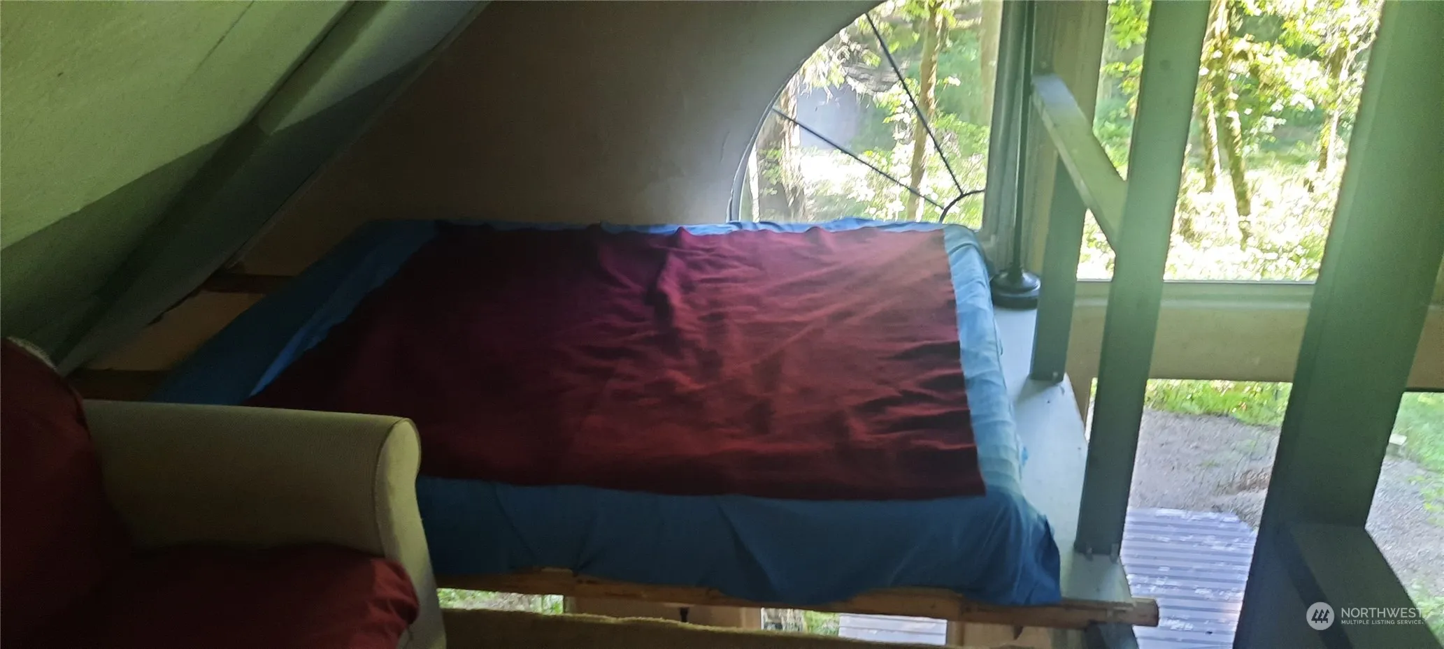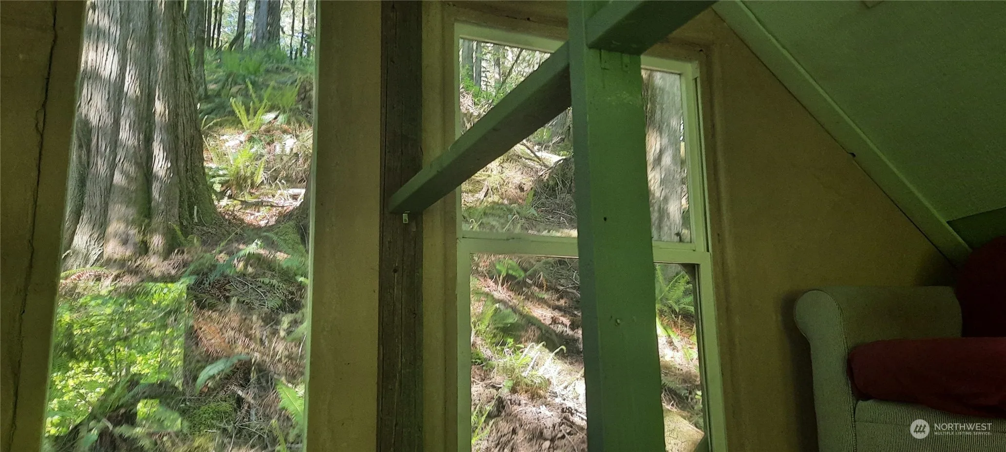 Beautiful cabin with loft that has large couch and queen size memory foam mattress. Many windows that look out over deck and massive mature trees, providing a treehouse feel. Small deck in front looking over woods toward Cascade River which you can hear rushing by. No neighbors above or to either side providing privacy. There is no septic system currently installed, but the heated comfort station with hot water is a short walk away.