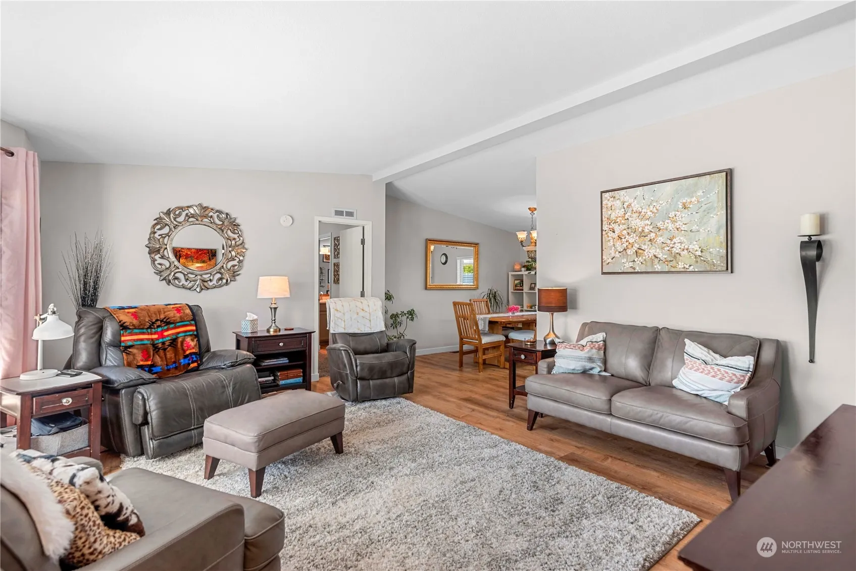 Delightfully updated manufactured home has a quiet patio & deck for enjoying the summer sunshine. Meadowridge does have locked RV parking available for a fee & pets are allowed with restrictions. Newer appliances,new roof in 2022 & new retaining wall…excellent condition & lovingly maintained.