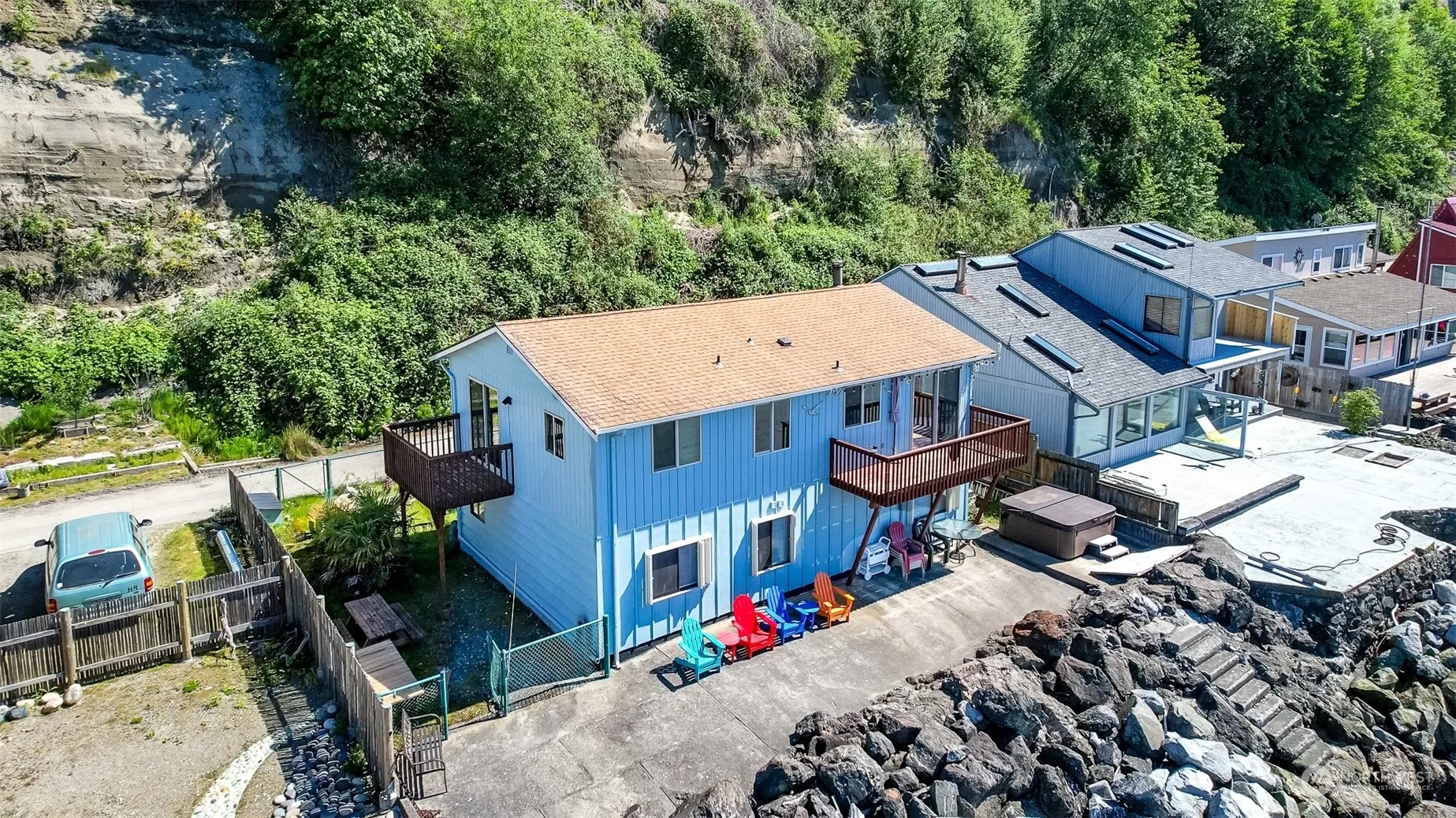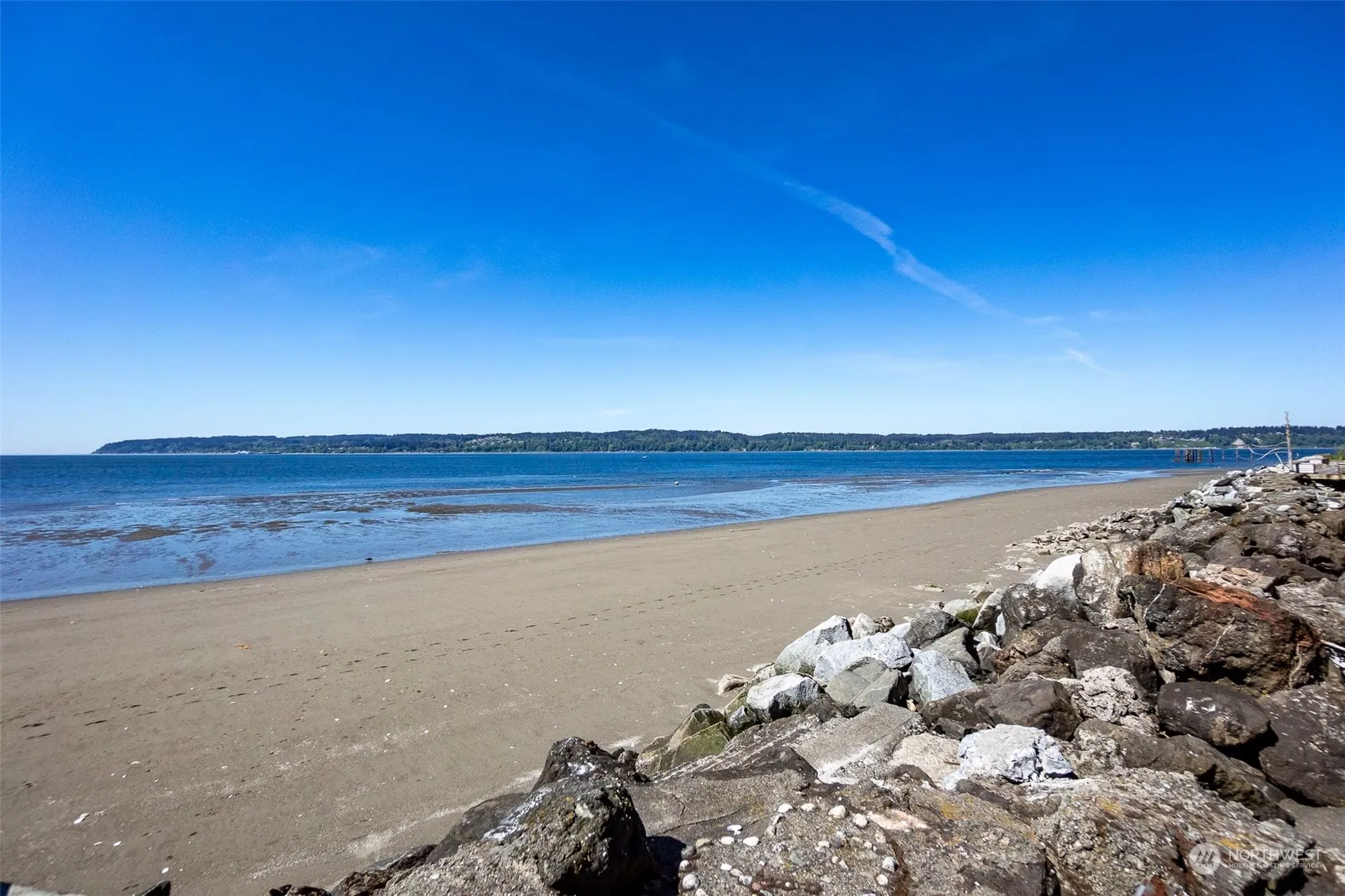 Welcome to PARADISE. Fantastic turnkey beach home on waterfront facing South. Views of Puget Sound, Ferries, Mountains, and wild life. Beautiful sandy beaches, Fishing, crabbing, all water sports. Upper level has 2 Bedrooms (master has King size bed), Completely furnished with top-of-the-line furniture. Free standing wood stove, lower level has full bathroom family room with view. Large Garage. Hot Tub. View from every room in home and garage. There are so many extra’s that are included.