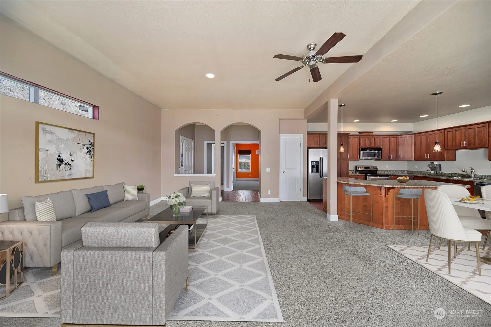 LOCATION! Very unique end-unit townhome with a huge yard, tons of privacy, right next to the canyon creek within Sunserra! First time on market. Incredible location surrounded by captivating basalt cliffs with a view of the golf course and the Columbia river. You can listen to the soothing sound of the creek and watch hawks fly overhead (nests in the cliffs) every morning on your peaceful back patio. Or maybe you’d rather go play a soccer game in your huge yard. This unit also has one of the most desirable floorplans due to the primary bedroom being on the main level, as well as a very spacious living room and kitchen area. It’s located just steps from the less-busy canyon pool and hot tub.