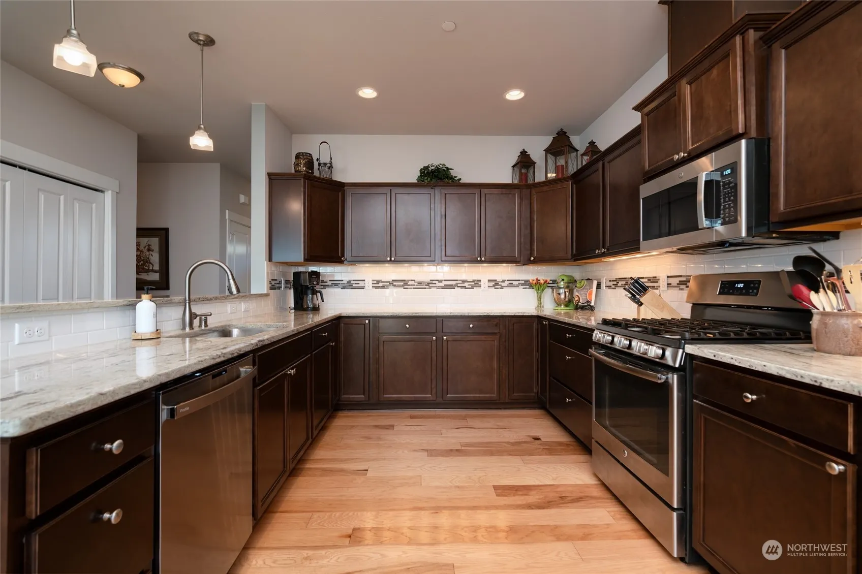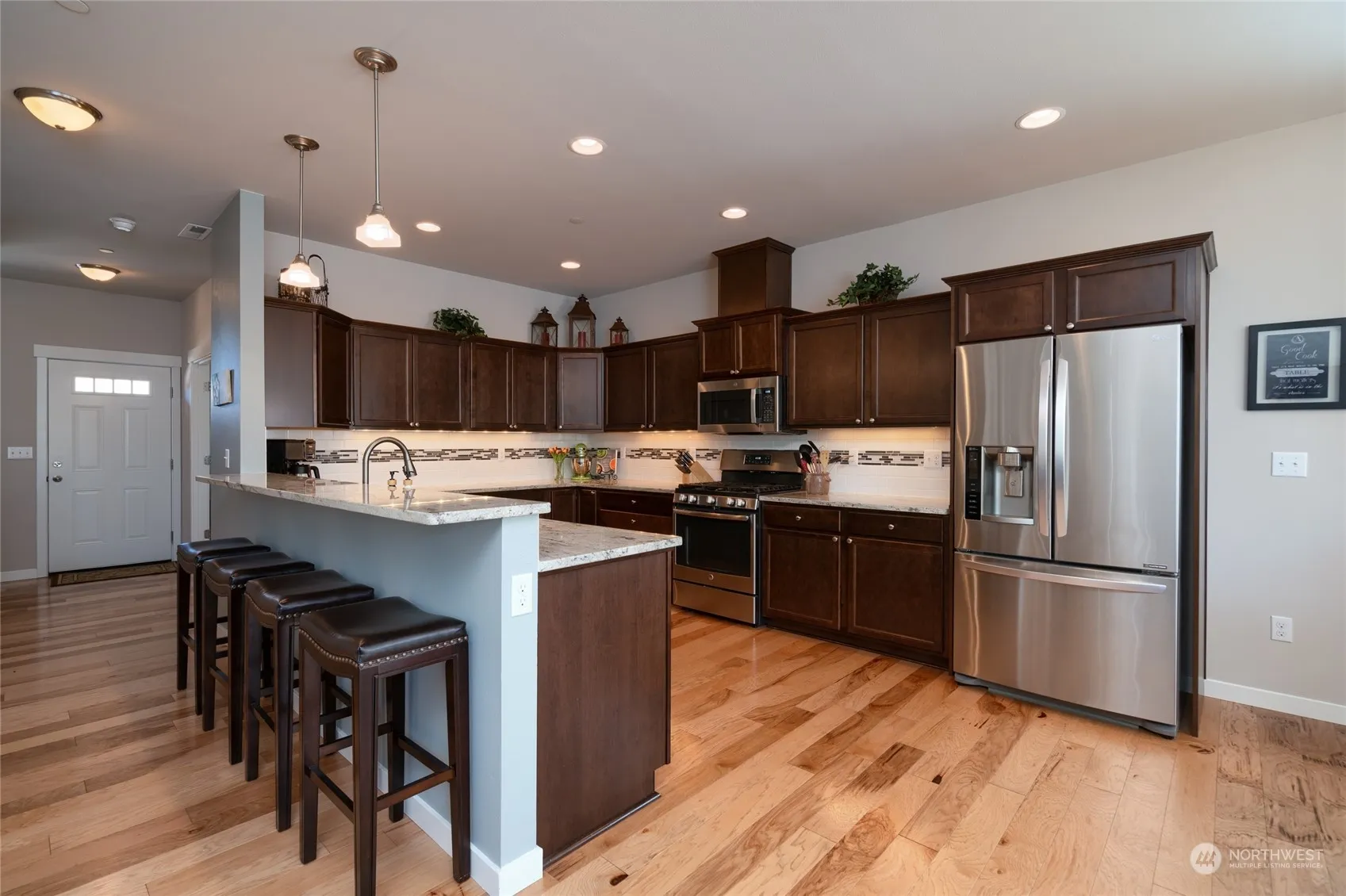 Welcome to SummerSun Estates. Built in 2018, this impeccable 4-bdm, 2.5-bth home offers the perfect blend of modern comfort & privacy, nestled at the end of a serene street, bordering a lush green belt & walking trail. The spacious kitchen features granite countertops, newer dishwasher/micro, ample storage, eating bar, & pantry area. The large open living space flows into dining area, leading to private backyard & patio. Imagine relaxing in the hot tub under the gazebo, surrounded by nature’s beauty. Upstairs, you’ll find an extra wide hallway, washer/dryer, three bedrooms w/full bathroom, along w/primary bedroom boasting a en-suite bathroom & walk-in closet. And a private office at the entry. Built w/a sprinkler system. A must see home!