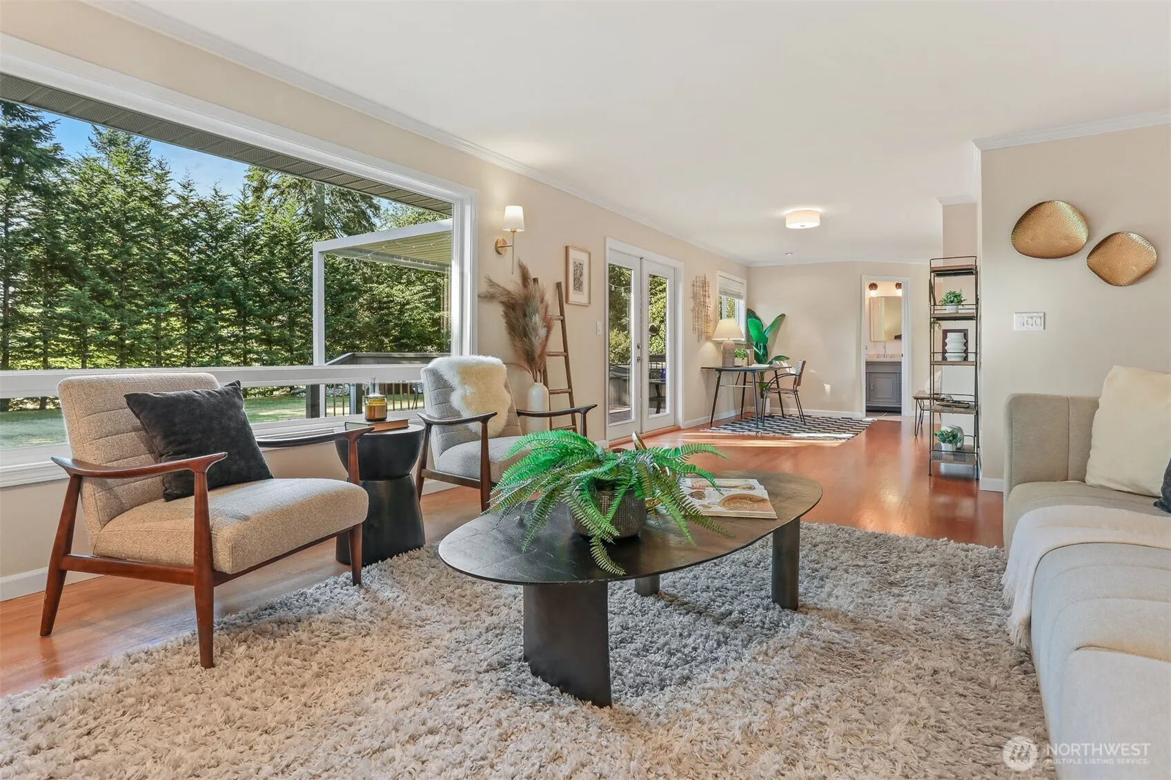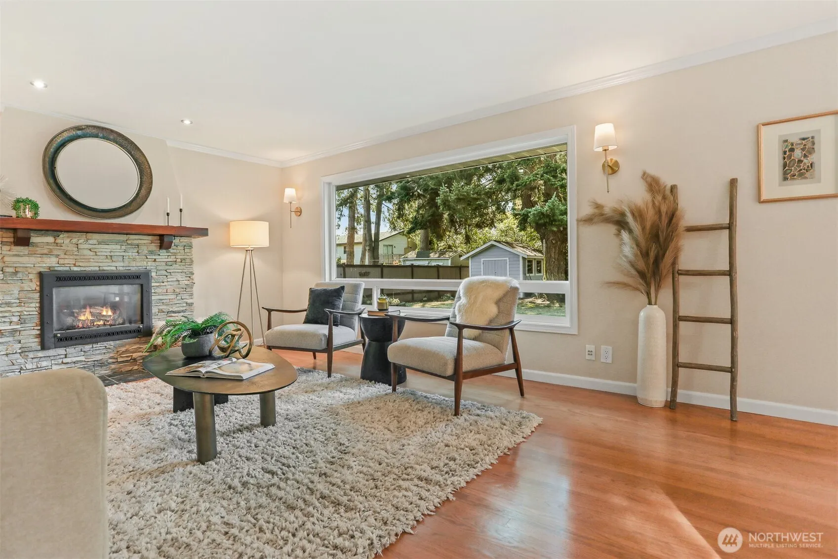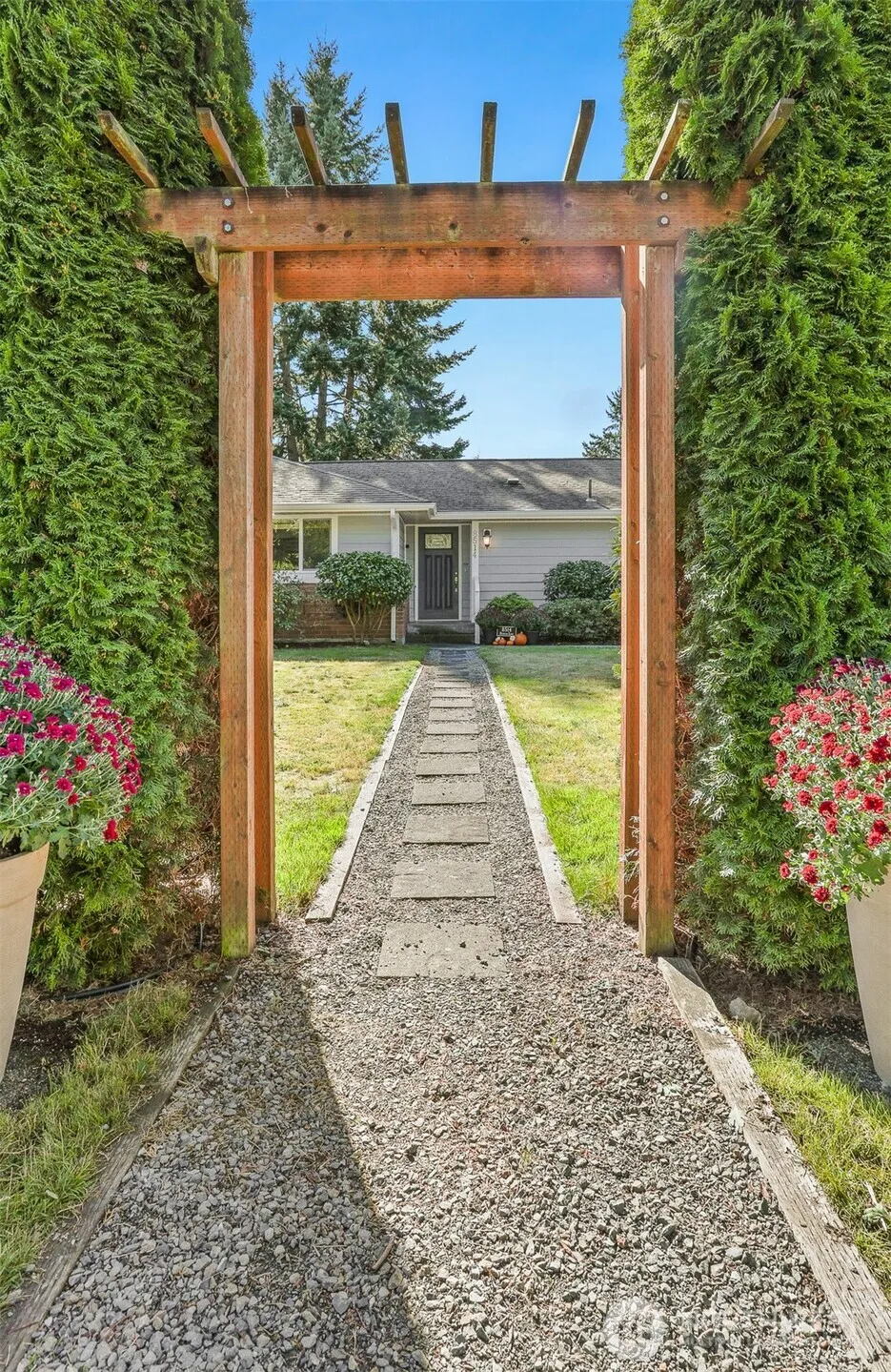 Beautiful Edmonds single-level contemporary residence seamlessly blends thoughtful modern updates w/ timeless charm. This inviting 3-bed, 2-bath home showcases a chef’s kitchen w/ stunning granite countertops, custom cabinetry, Bertazzoni gas range, & spacious dining area. Light-filled living room w/ large picture window & cozy gas fireplace flows into the dining room, complete w/ dry bar — perfect for entertaining. French doors open to a private, tree-lined backyard retreat featuring a spacious Trex deck, adjustable pergola, & hot tub. Ideal for gardening, pets, or simply relaxing. Well-maintained original hardwood floors run throughout, central air conditioning, dedicated laundry room, & large EV-ready garage with abundant storage.
