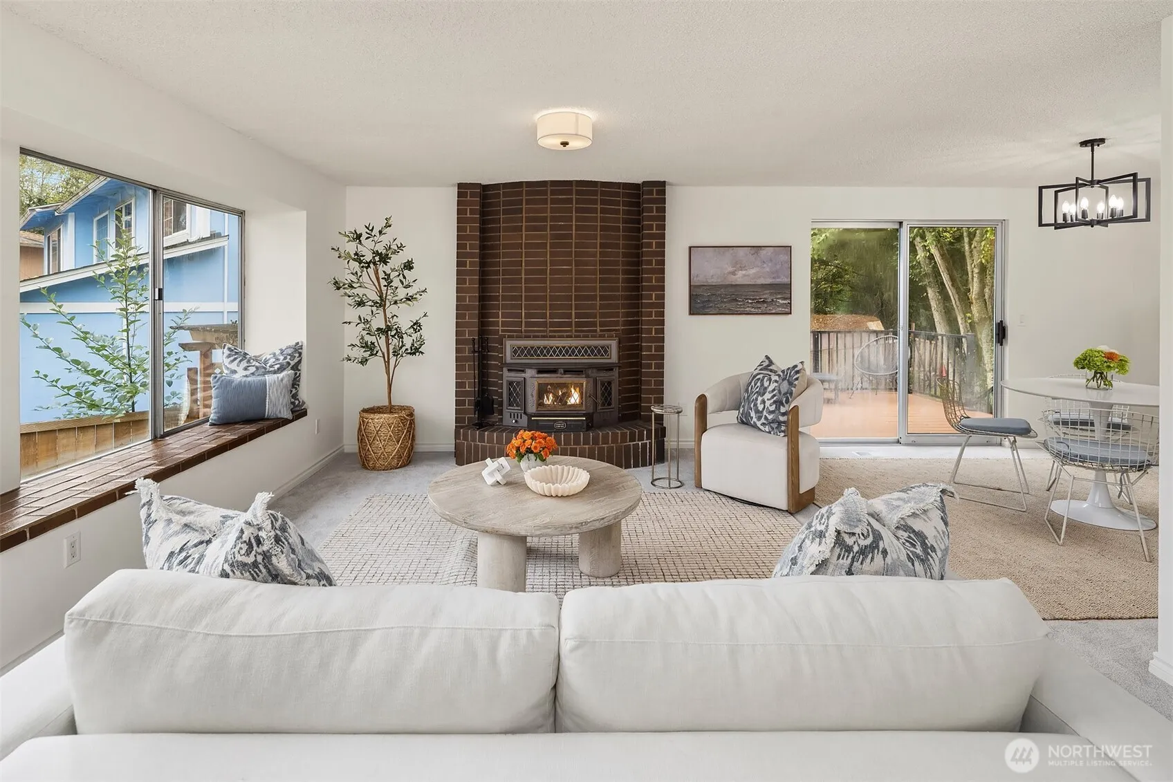 Tucked at the end of an inviting cul-de-sac, this contemporary tri-level offers space, updates & convenience. Light-filled living spaces feature a brick fireplace & a substantial bay window that opens wide to bring the outdoors in. Sliding glass doors extend the dining area to a spacious deck overlooking the backyard, perfect for gatherings. The sweet kitchen enjoys garden views & easy flow to the main living area & outdoor deck. Upstairs offers a primary suite with ¾ bath & 2 additional bedrooms with a shared full bath. The lower level provides flexible space with laundry & outdoor access. Two-car garage & beveled cedar siding. Close to parks, schools, groceries, I-5 & upcoming light rail. This home is move-in ready & pre-inspected!