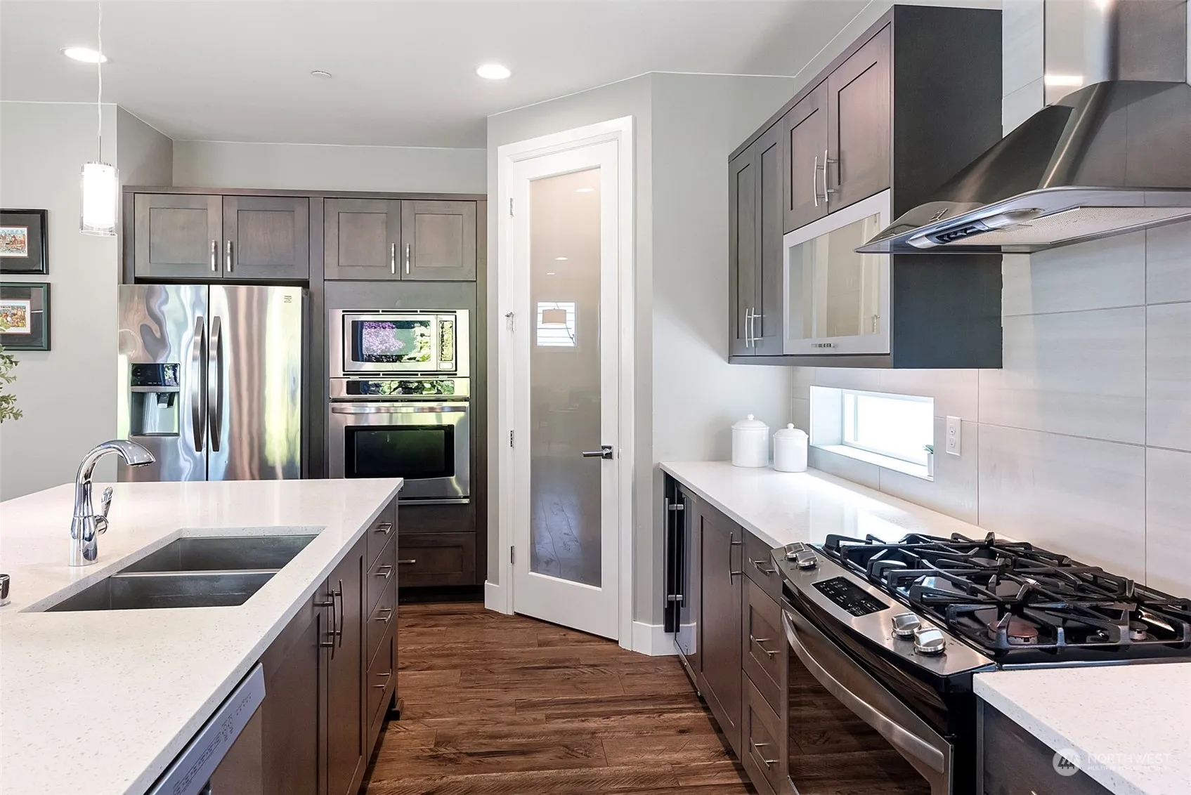This treasured home is sited on a perimeter lot with fenced rear yard and updated landscaping. Modern design with artistic touches including a tile floor entry, hardwood floors, 8-foot interior doors and exterior stone accents. The primary bedroom has a luxury bath with freestanding soaking tub, separate shower and walk in closet. The island kitchen features quartz counter tops, stainless appliances, built-in ovens, wine chiller and walk-in pantry. Sliding doors open to a covered deck with gas fireplace and a sun patio. Three bedrooms up plus a study on the main level which can serve as a fourth bedroom. Minutes to Hwy 16, the Narrows Bridge, Tacoma Narrows Airport and Historic Downtown Gig Harbor. No Sign.