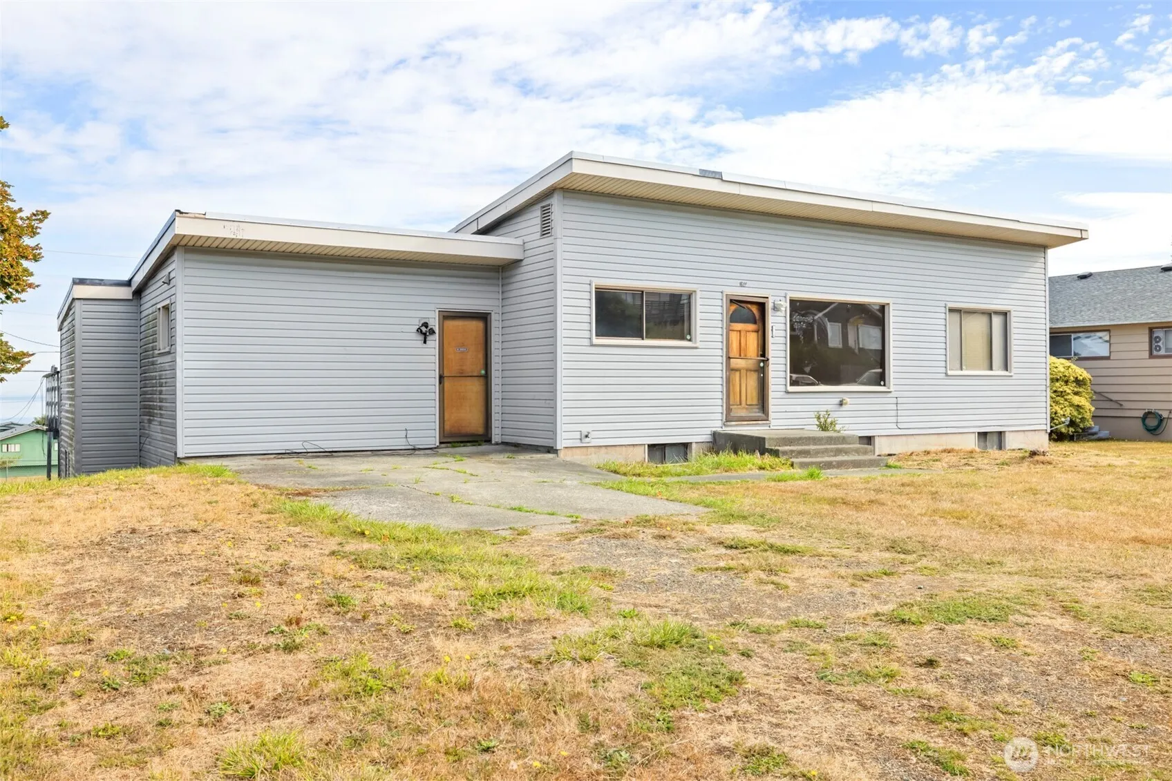 Two kitchens, two laundry rooms & a water view! Bring some tools & TLC to update this home that’s perfect for flexible living or work from home. Lower level is bright, open, with woodstove, kitchen, BR, bath, separate entrance & storage galore. Main level has mid-century fireplace, Beds & Baths at each end of the house. Former garage is workshop or storage area. So much potential, so much living space, plus apple trees & fenced yard. One of a kind fixer upper – ready to become a dream home.