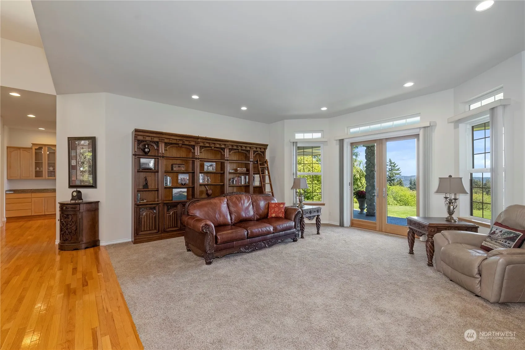 Rarely will you find a forever home that checks all the boxes! Look no Further! This is it! A meticulously crafted one level gem, with expansive views of the Cascades, Seattle & waterways, sprawling living spaces, 3 bdrms, home office, 3.5 baths, 10’4” ceilings, extensive windows all with transoms (even in the garage), French doors, phantom screens, hardwoods, granite, tile, inviting foyer, 3 fireplaces, exquisite primary suite, chef’s kitchen, theater, 2 furnaces & heat pumps, 2 tankless water heaters, automatic generator, built in vacuum, oversized 4 car garage, water feature, circular drive, covered front porch, covered back patio, open view patio, private location, 3.2 acs, offering a perfect blend of elegance, comfort, & functionality.