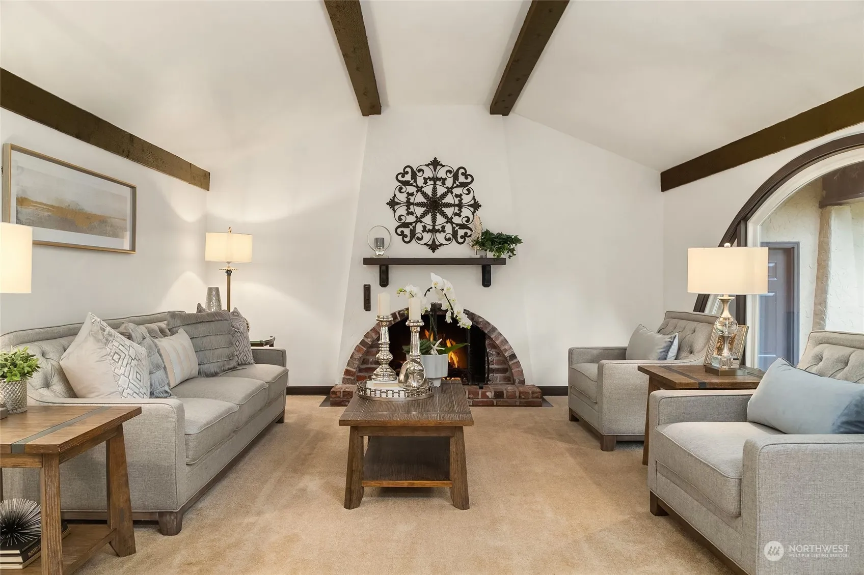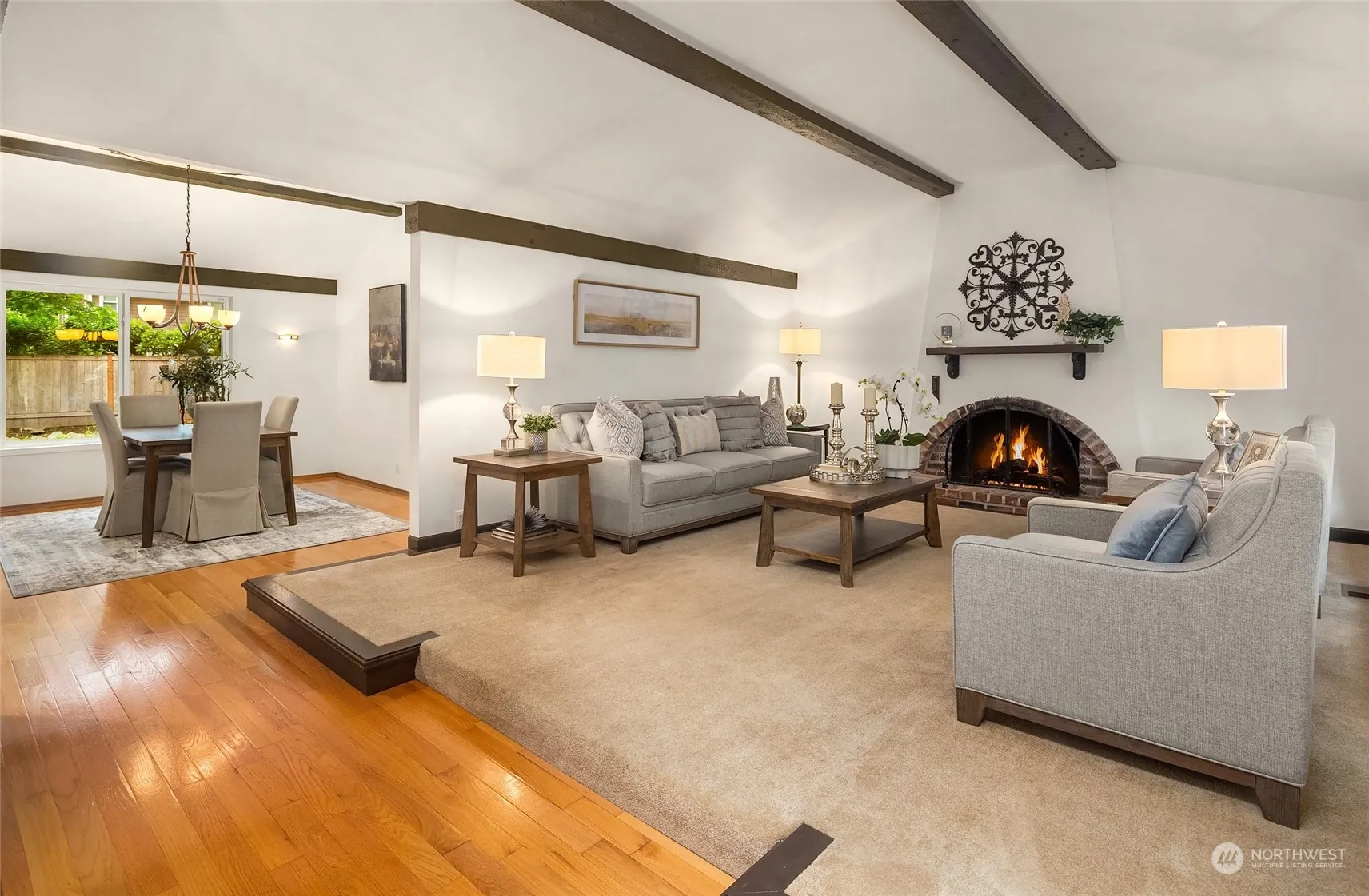 Desirable rambler in the heart of Sammamish. This home features hardwoods, Spanish-style motif living room with wood beams, an arched brick fireplace and a picture window adding to the atmosphere. Kitchen features a large skylight, granite countertops, rich dark cabs, gas cooktop & a sitting area with 2nd fireplace to enjoy morning coffee. Down the hall is a primary suite w/natural light & a 3/4 bth ensuite. 2 additional bedrooms and guest bath as well. Off the family room is a 4th bedroom or office in addition to a powder room. The backyard is a peaceful spot to unwind in the summer. Sammamish offers many parks and lakes for all to enjoy. Award-winning Issaquah School district. Close to I-90 and nearby dining, entertainment and amenities.