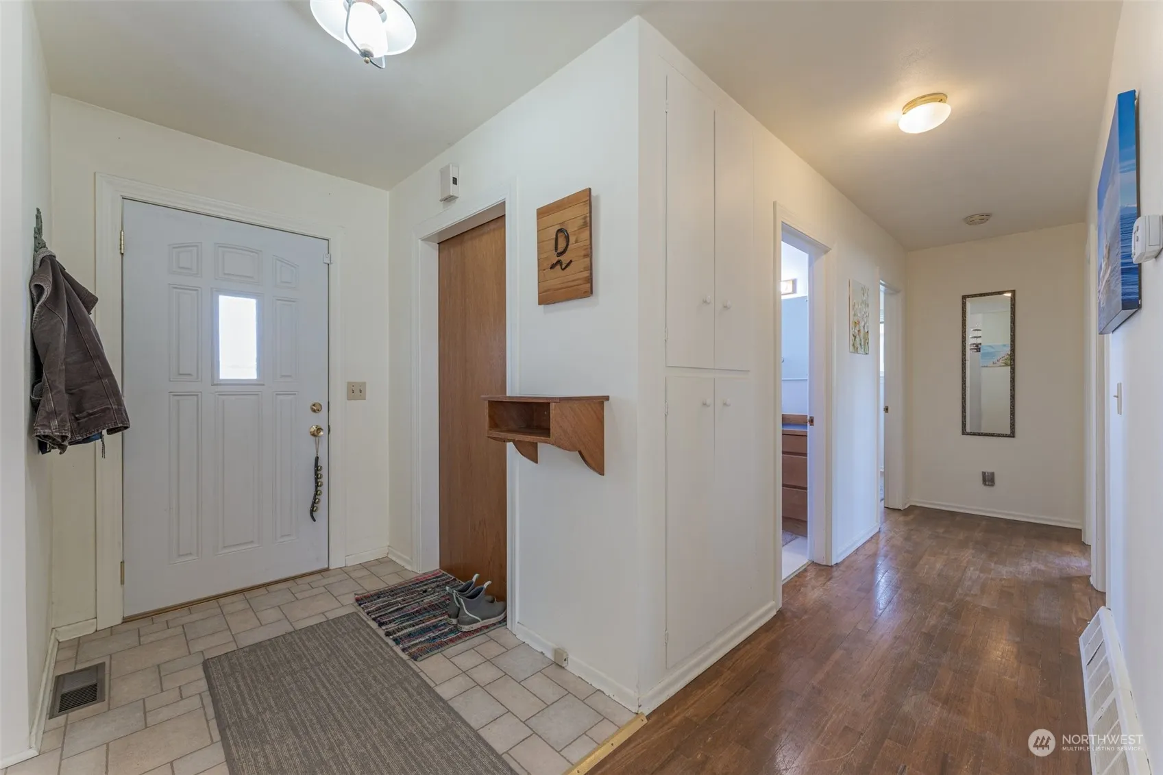Great, clean home in southwest Quincy with partially finished basement that has a 3/4 bath. 3 bedrooms and a full bath on the main level. Newer storm windows and composition roof. Large living room with wood burning fireplace. Hardwood flooring throughout the home. Attached carport with large back yard that has a nice garden space with various fruit trees, including peaches, plum and apricot. There are also Blackberries and Raspberries. There is a newer shed in the backyard that has a workbench.