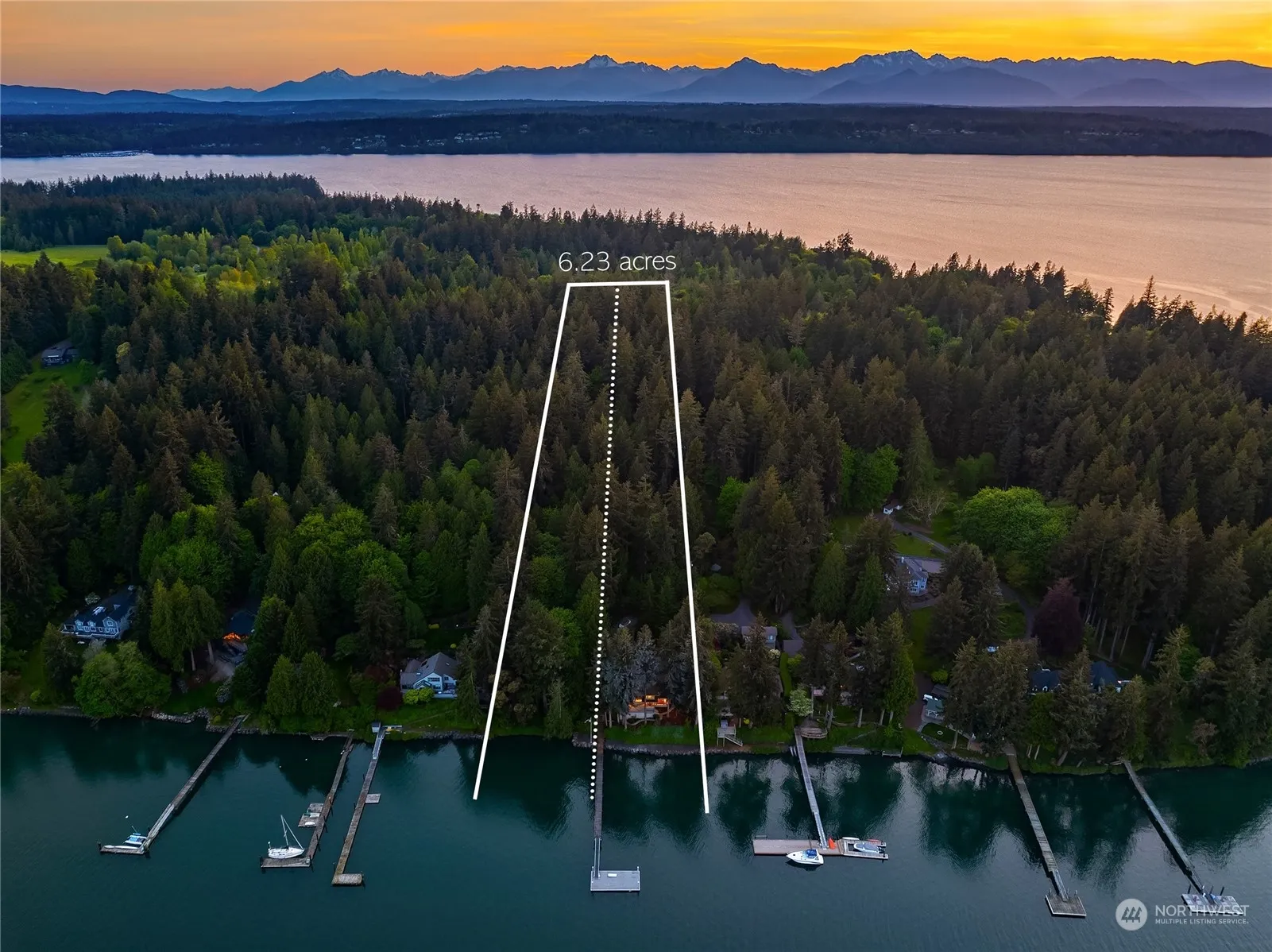 A winding drive through lush forest welcomes you to this secluded 6+ acre gated estate on 213’ of bulkheaded low-bank Manzanita Bay waterfront with a dock. The recently rebuilt 40’x20′ deep-water float (12′ @ 0′ tide) can accommodate up to a 60′ boat. Elegant NW Contemporary design features an open floorplan with 3 beds & 2 private offices. Abundant windows offer views from nearly every room. BC+J designed kitchen with high-end appliances & remodeled primary bath with soaking tub & wetroom. With 2 tax parcels (zoned R1) and 6.23 acres in total, this is a rare opportunity for waterfront acreage on Bainbridge with development potential. The proximity to Battle Point Park and the Grand Forest only adds to the allure of this exquisite property.