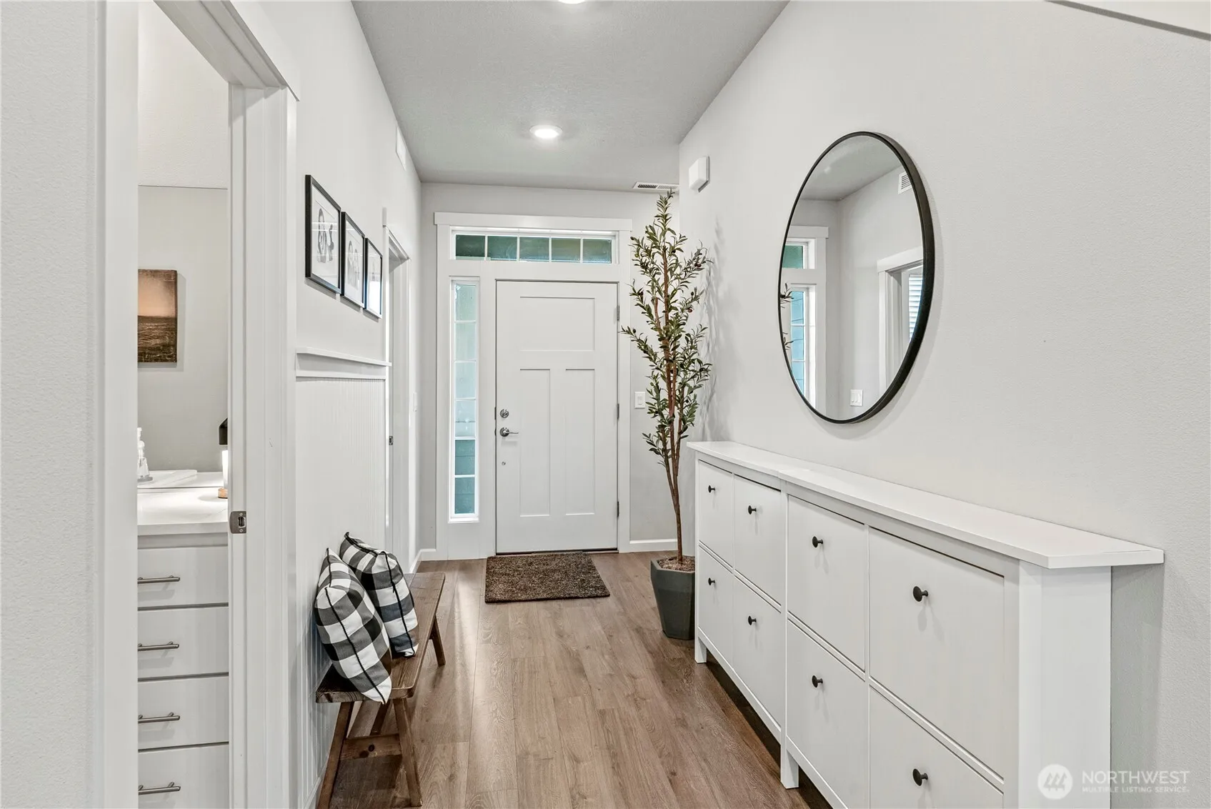 Here is your chance to own this original owner two-story home built in 2023. This open floor footprint is ideal for everyday living and entertaining. The home features a living room with a charming fireplace, modern quartz kitchen and dining area with patio access. Versatile main floor bedroom/den. The second floor hosts four additional bedrooms and 2 full baths of which the primary bedroom has double doors that open to an en-suite bathroom with spa tub, double sinks and walk in closet. The spacious lot has a covered patio and backs to a greenspace with trails and waterway. Two car garage complex this perfect 10 out of 10 home.