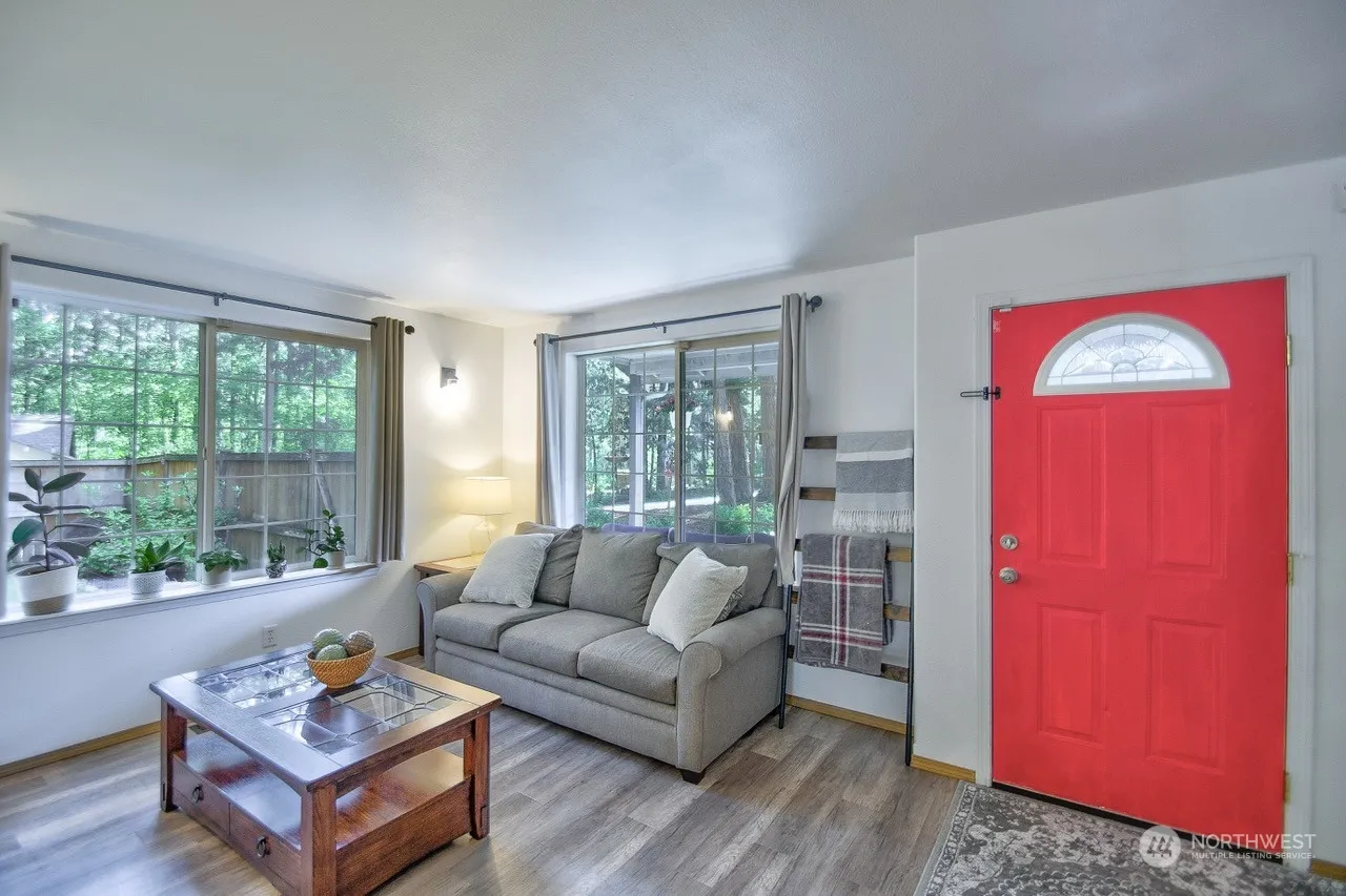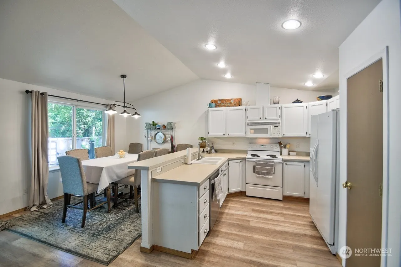 Just Steps away from the lake, this 1600 sq ft 3 bed 2 bath rambler sits perched on a corner lot. Walk into a freshly painted interior, Spacious front room with additional living room off kitchen, kitchen has eating bar and next to the sperate dining space, brightly updated bathrooms, cabinetry with quartz countertops, new fixtures throughout, Newly installed trex deck to enjoy the peaceful backyard with peekaboo view of lake below. Heat Pump and AC, Landscaped with shrubs and blueberry bushes. Fully Fenced backyard with Dog run located on side of home. Gated community, community boat launch, pool, trails and more! Turn key ready, you are not going to want to miss out this gem!