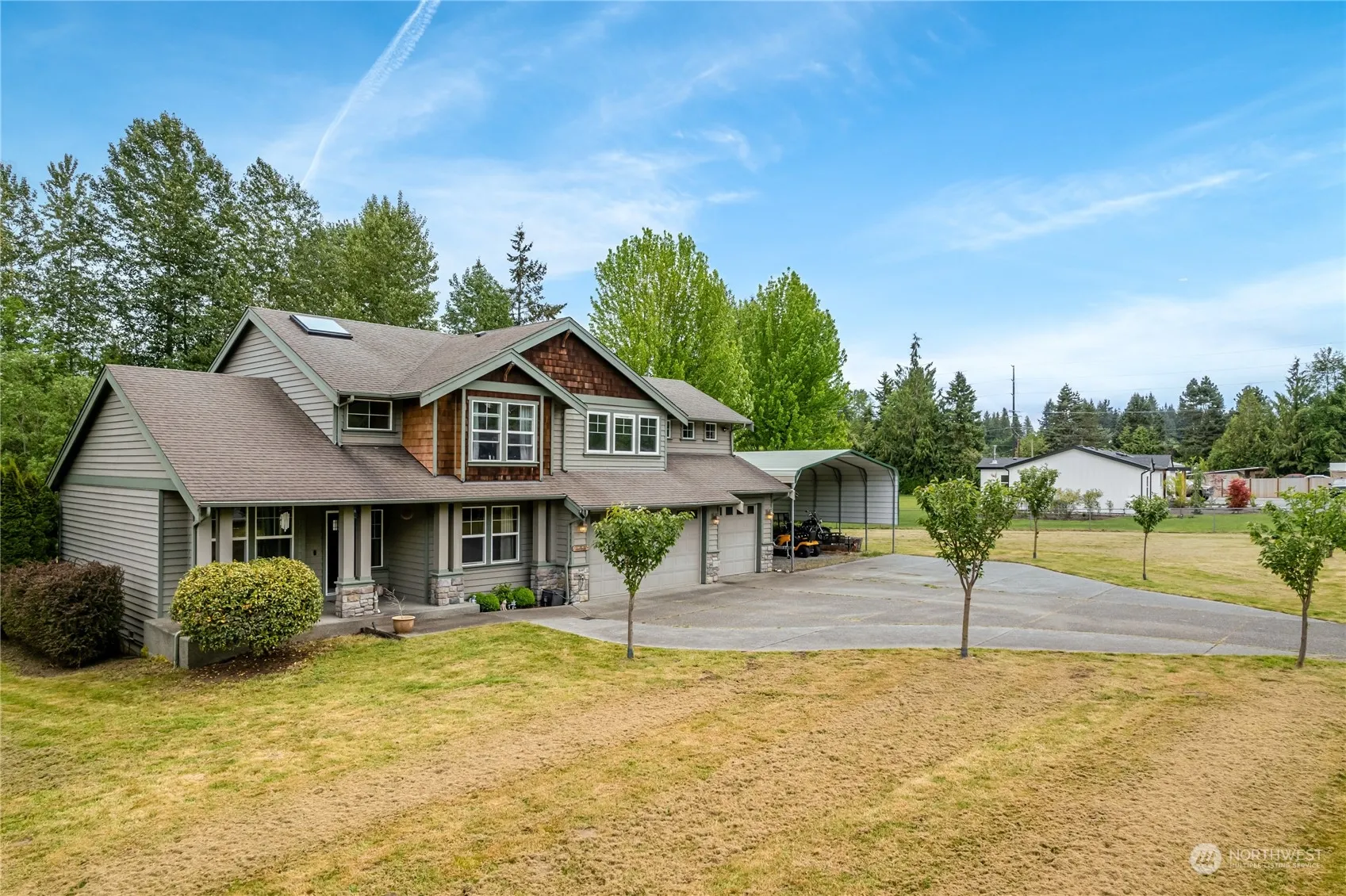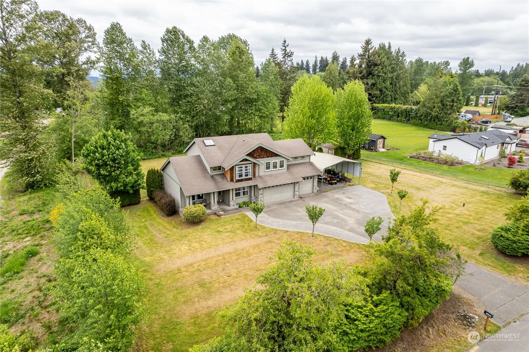 Escape to your own slice of country paradise without sacrificing convenience in this must see 4-bedroom home nestled on 1.75 acres. Embrace the timeless elegance of its traditional floor plan with formal spaces, complemented by an open kitchen & family room ideal for modern living. Entertain in style with granite countertops, SS appliances, & heated floors in the luxurious primary suite. Unwind in the expansive bonus rec room or relax on the large covered back deck overlooking your private oasis. 3-car garage, covered RV parking, & 2 storage sheds. Water filtration system, AC & outdoor hot water are just some of the amenities this wonderful property offers. Desirable Clearview location and Snohomish schools.