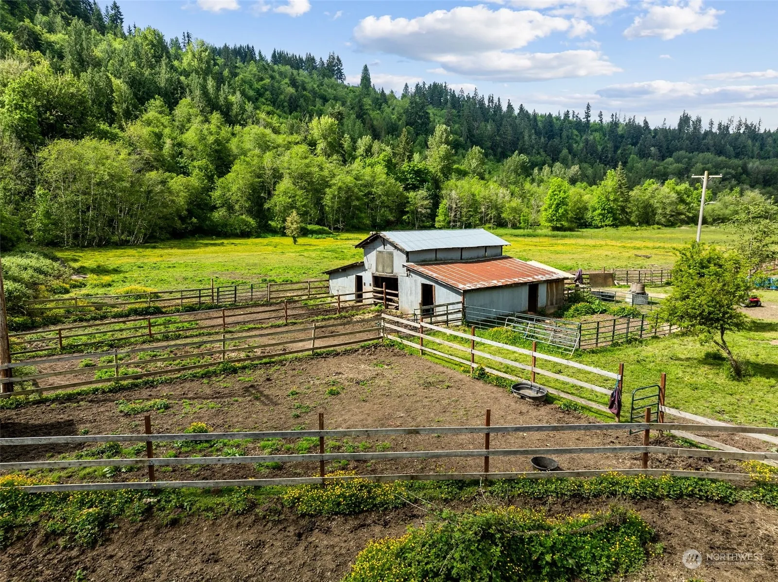 Spectacular opportunity to own this 13-acre equestrian estate in Eatonville! Surrounded by conservation land and with beautiful territorial views, this property is one of a kind! Ohop Creek borders the property with a stunning bridge entrance. 5 stall barn with hay area and tack room. Fenced Paddock space for horses! Plenty of parking for recreational vehicles/RV’s. The 1913 farmhouse boasts 2,699 sq ft of well used space! Large covered front porch with room for seating! Open kitchen with solid wood countertops, white shaker cabinets, and SS appliances! Great room living/dining space with LVP flooring and wood stove with white brick surround. 4 bedrooms and 2.5 bathrooms! Centrally located near Eatonville schools, shopping, & restaurants!