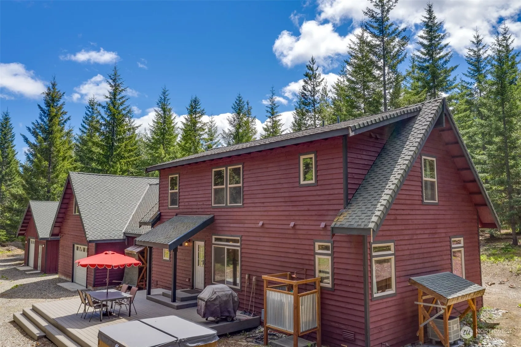 Tucked away amidst nature’s splendor, this retreat invites you to unwind in tranquility. Home combines rustic charm w/ modern amenities, 3 bed, 3 bath, bonus rm, & sleeps 12. The large, open living space w/vaulted ceilings, well-appointed kitchen, 2 dining areas, & cozy wood stove make it the perfect gathering place. Spacious backyard trex deck w/ panoramic views, hot tub, & fire pit. Next to the National Forest, its peaceful ambiance & proximity to outdoor activities like hiking, fishing, biking, & skiing, make this property a perfect Air bnb retreat. Great for outdoor enthusiasts & city dwellers craving a serene escape, the possibilities are endless. Just 7 miles from Cle Elum provides easy access to local amenities, food, & attractions.