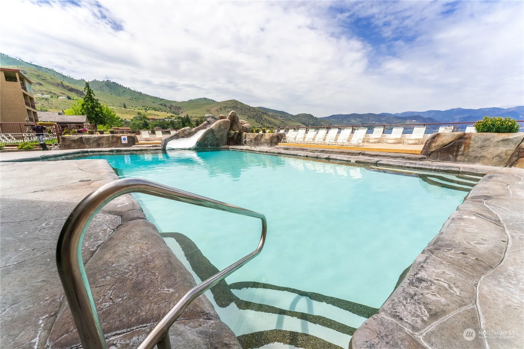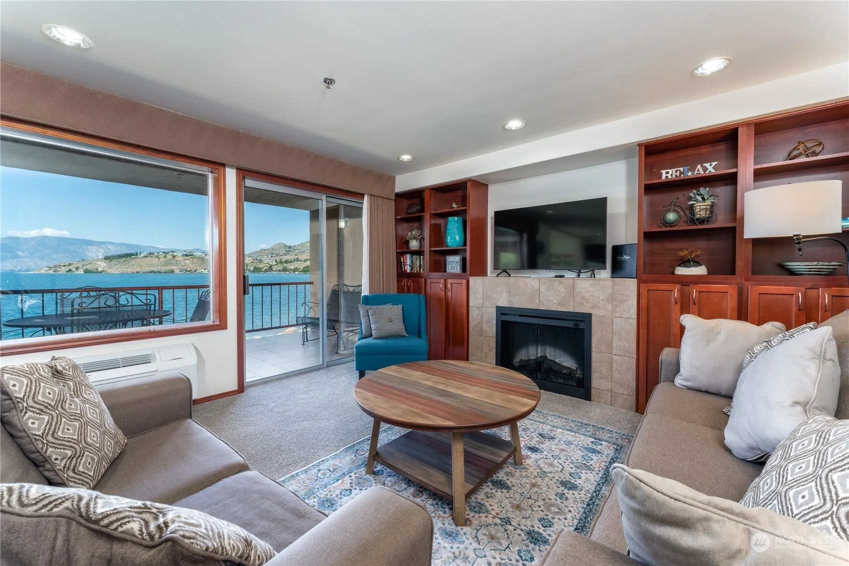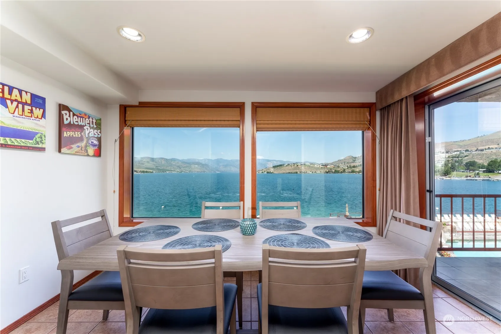 Sweeping uplake views of Lake Chelan from this waterfront 2 BR ondo at Grandview on the Lake. Walk to dining, shops, tasting rooms and entertainment in the heart of in downtown Chelan! Third floor 2 bedroom, 2 bath unit. with an open floor plan w/ private balcony overlooking the community pool, lawns, dock and mountains uplake. Tastefully updated and turnkey furnished. Comfortably sleeps six people. Amenities include pool with waterslide, hot tub, dock, BBQs, covered garage parking, and more. HOA dues include water, sewer, garbage, power, internet, TV, common area maintenance, and building insurance. Great rental income as well.