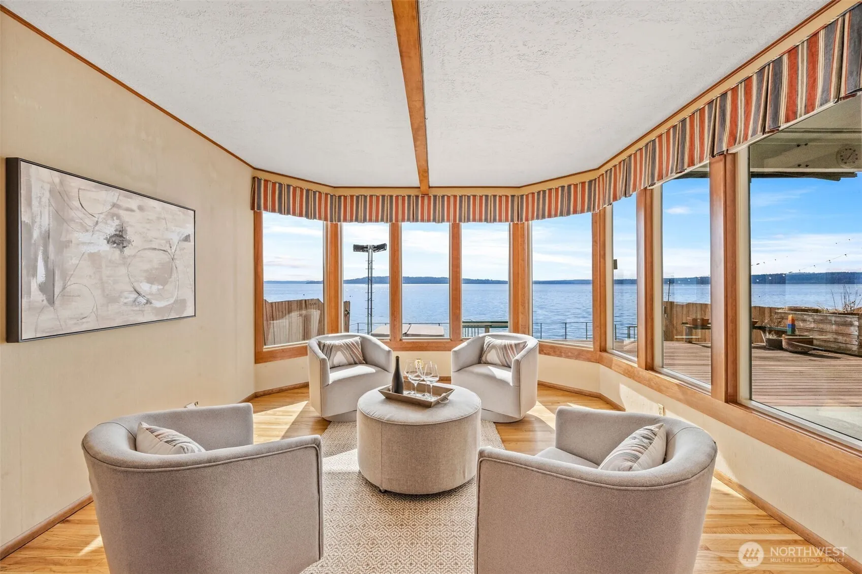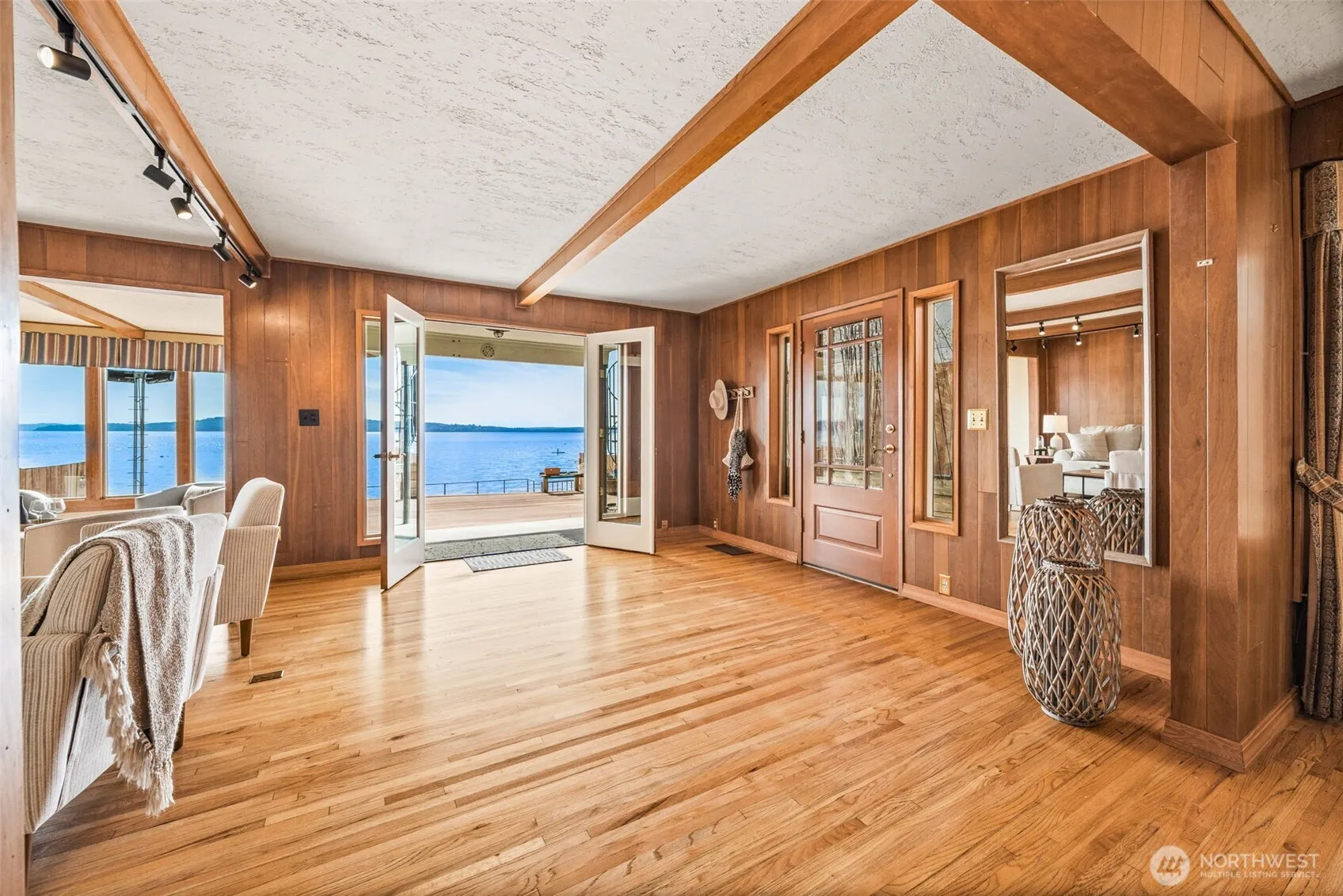 Welcome to this waterfront retreat in Three Tree Point! It’s like living on a houseboat, only better. 40′ of bulkhead beachfront with stunning views out to Puget Sound, top of Mt. Rainier and the Olympic Mountains! Entertain on the massive patio and deck combination with steps down to your own beach. Wide open entry with French doors bringing the outside in. Inviting formal living room with gas fireplace and adjacent sunroom, offer separate living areas with plenty of windows to take in the views. Drive-up 3-car garage with finished rooms above for home office, shop, exercise studio and more! Would make and ideal ADU/guest apartment (currently not plumbed for water/sewer). Enjoy year-round comfort with central A/C and gen. ready.